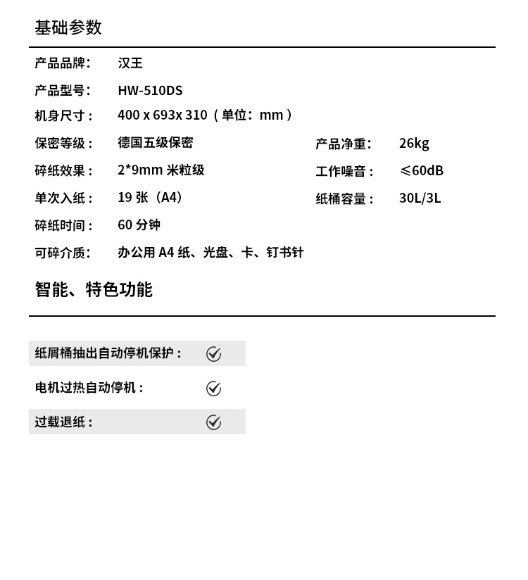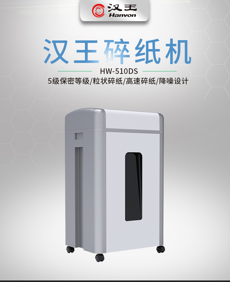 漢王(Hanvon)HW-510DS德國5級高保密碎紙機 雙碎屑桶粒狀碎紙60分鐘長時間碎紙光盤粉碎機