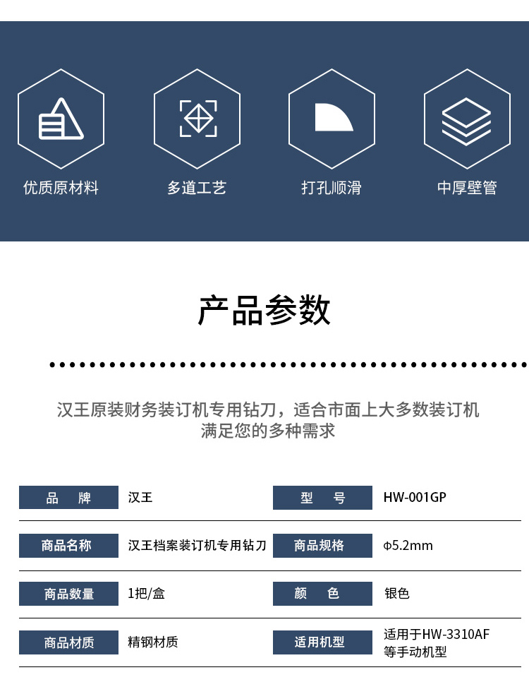 漢王(Hanvon)HW-001GP手動財務(wù)憑證裝訂機專用鉆刀打孔刀Φ5.2*40mm空心刀頭 原裝鉆刀
