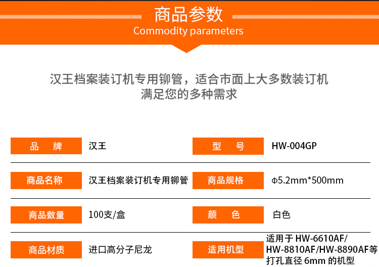 漢王(Hanvon)HW-004GP自動(dòng)財(cái)務(wù)裝訂機(jī)專用透明裝訂鉚管Φ5.2*500mm 100支/盒裝熱熔管