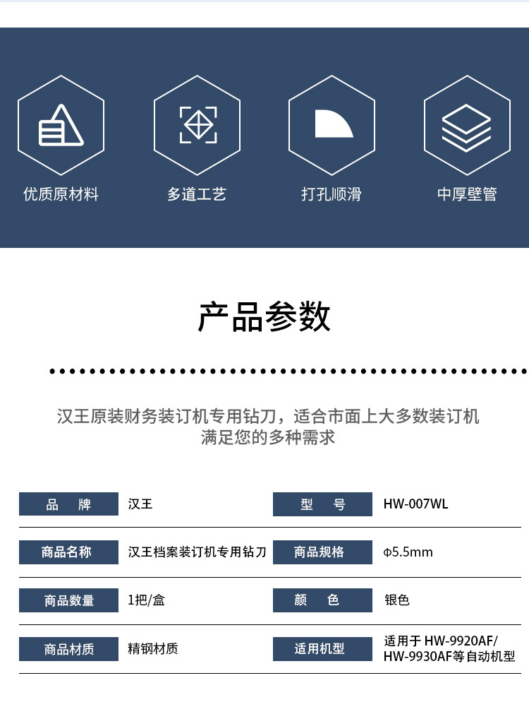 漢王(Hanvon)HW-007WL財(cái)務(wù)憑證檔案裝訂機(jī)專用空心鉆刀Φ5.5*50mm原裝真空鉆刀打孔刀頭