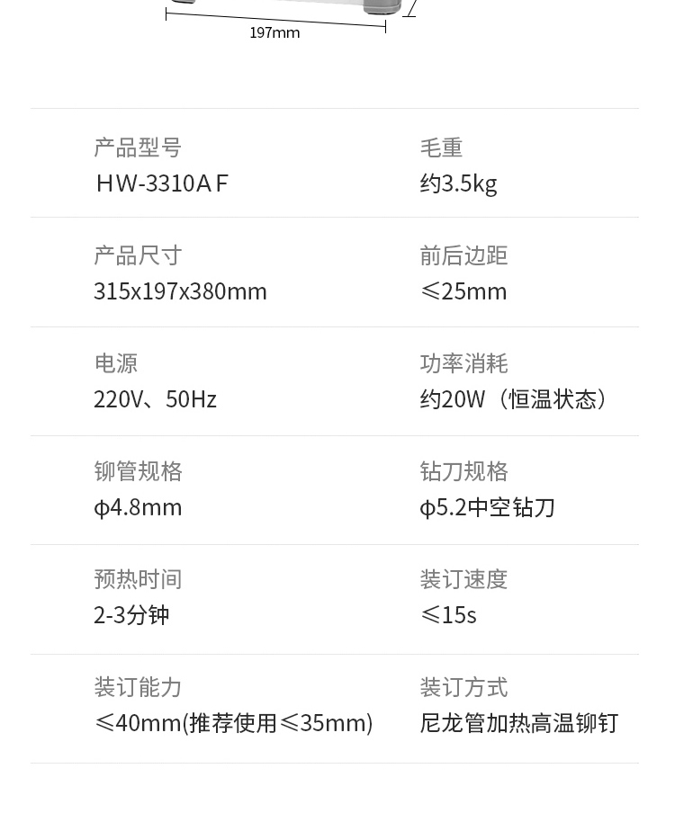 漢王(Hanvon)HW-3310AF會計財務(wù)憑證裝訂機 熱熔膠鉚管 檔案標(biāo)書文件打孔機 雙手柄省力型
