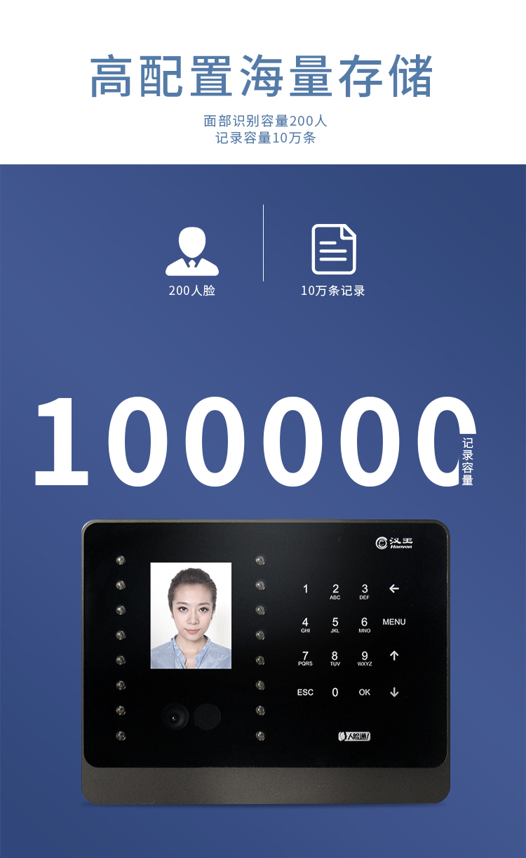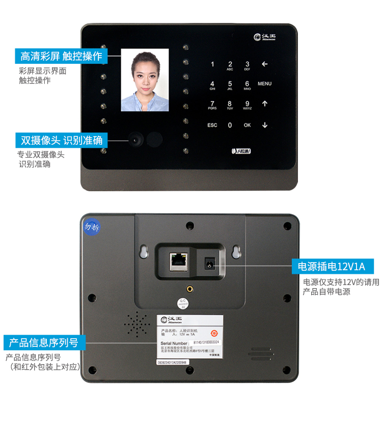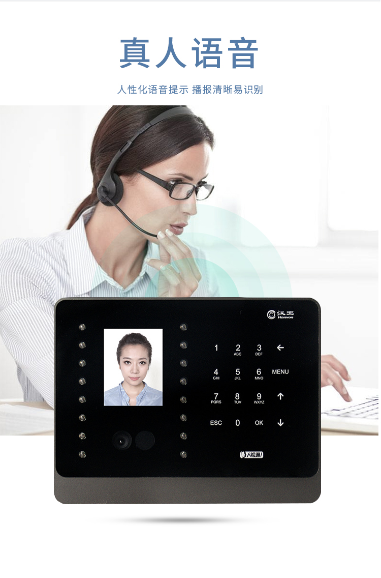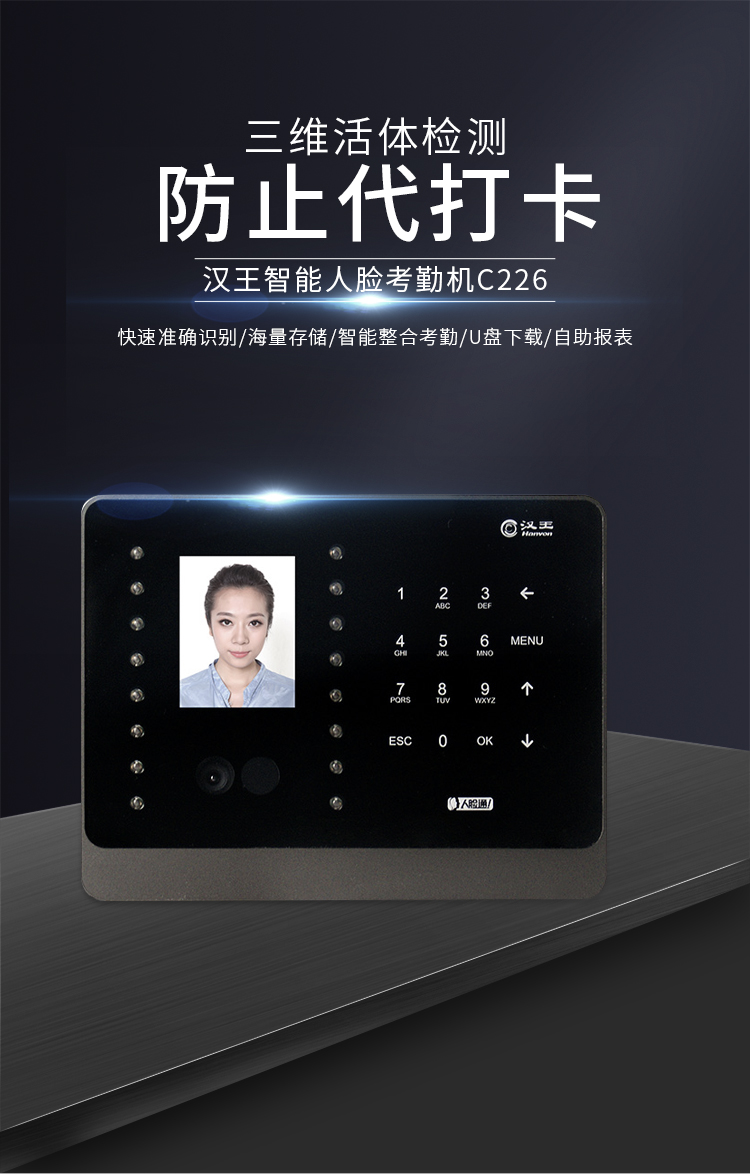 漢王(hanvon)智能人臉考勤機 面部識別簽到機 刷臉上下班打卡機 快速人臉識別打卡器C226S