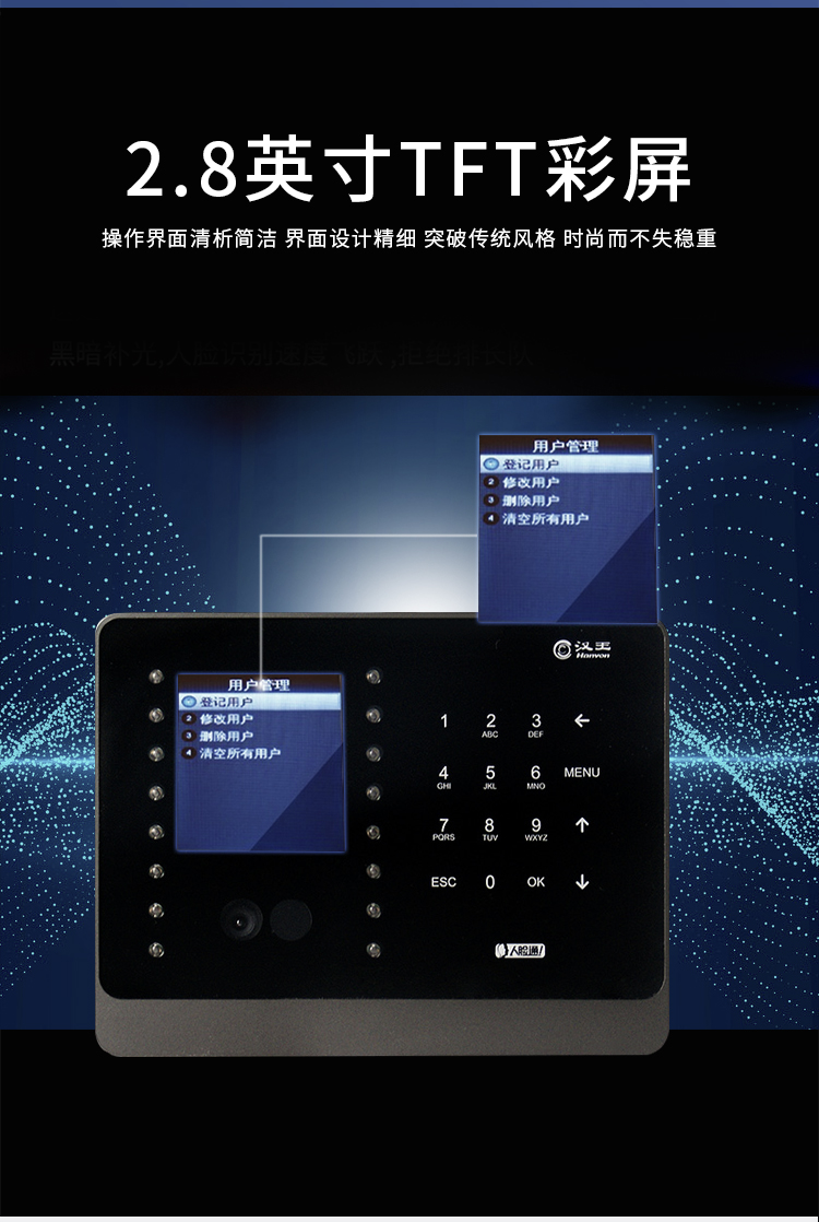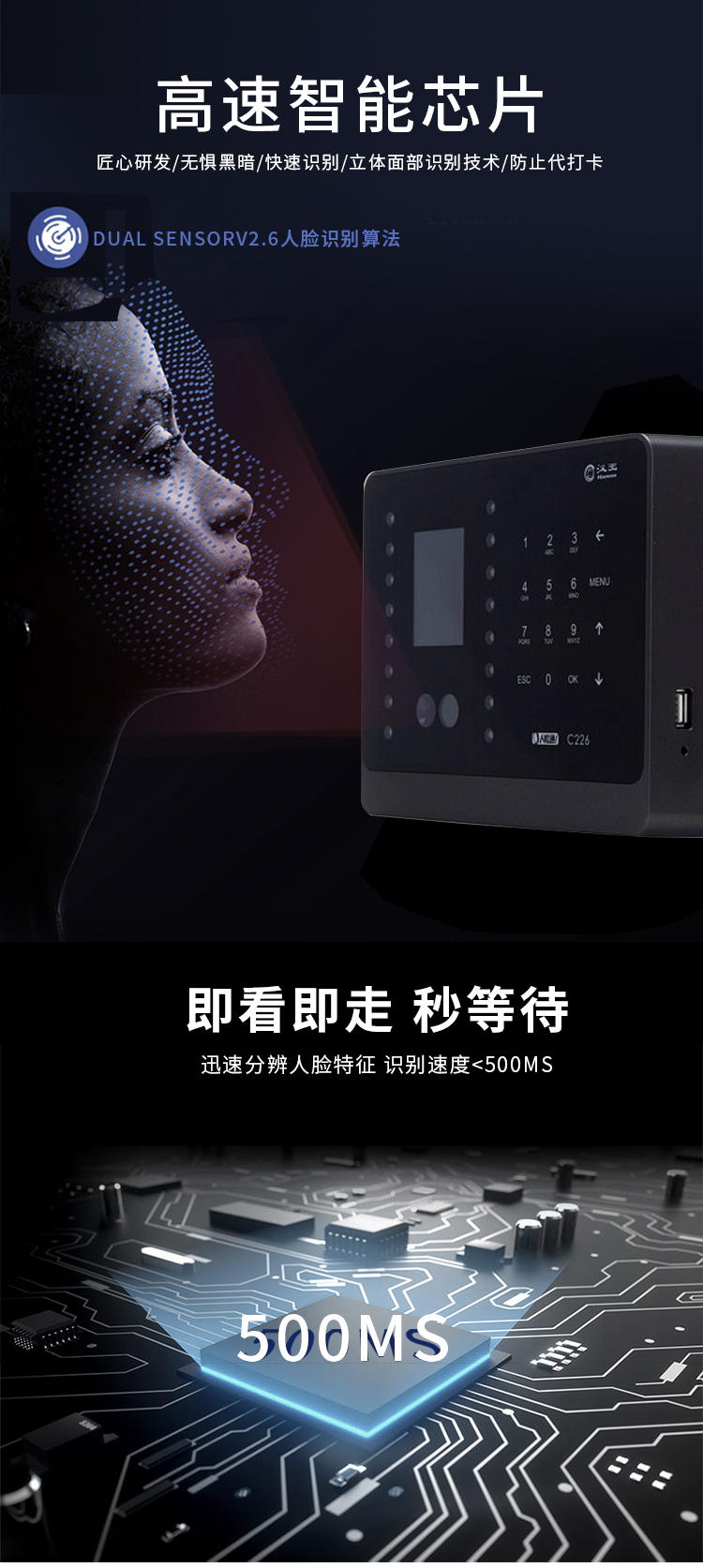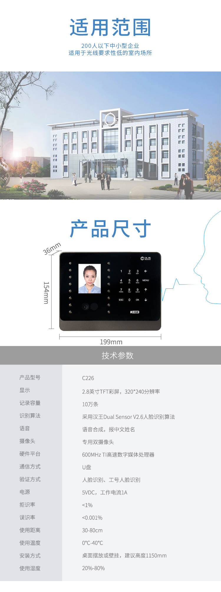 漢王(hanvon)智能人臉考勤機 面部識別簽到機 刷臉上下班打卡機 快速人臉識別打卡器C226S