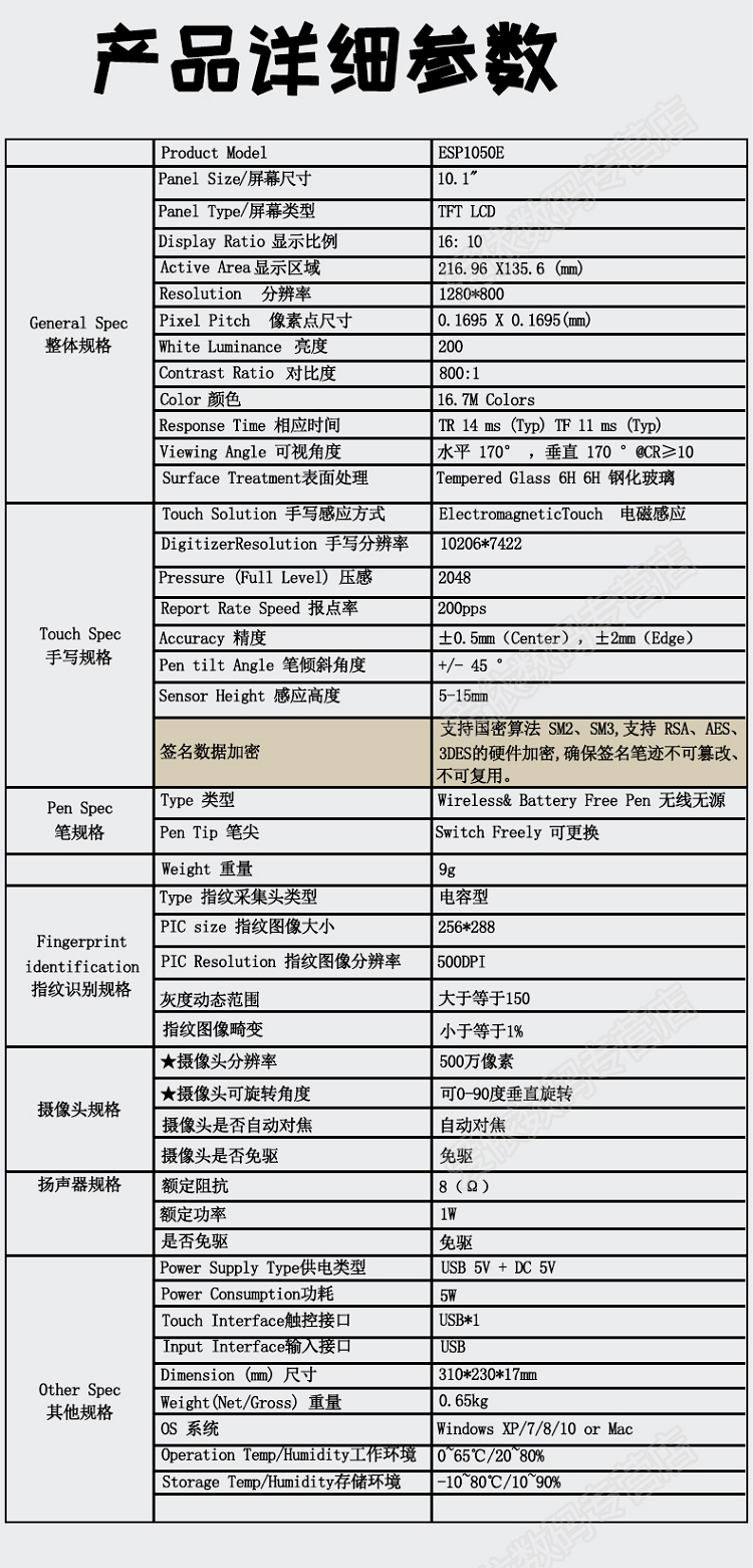 漢王(Hanvon)ESP1050E 10.1英寸電子簽批屏手寫(xiě)簽批液晶屏 行業(yè)簽名屏 原筆跡保存 簽名數(shù)位板