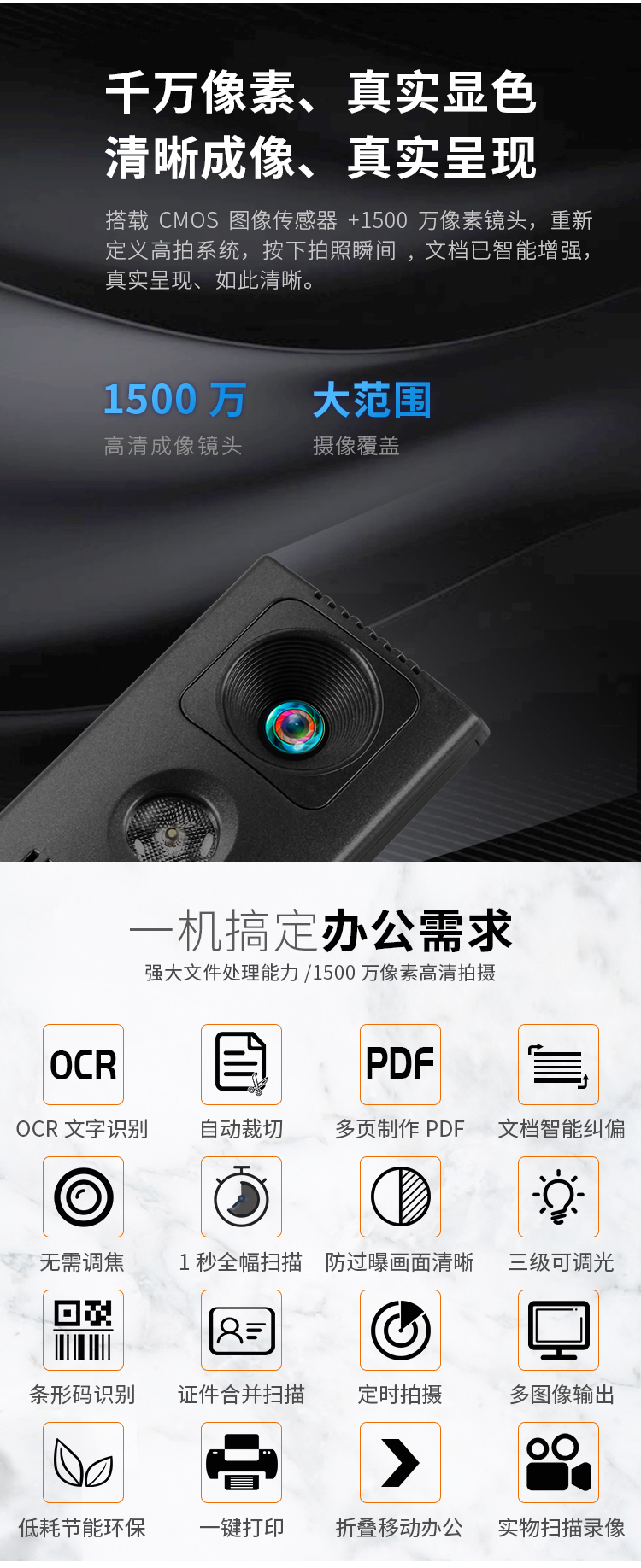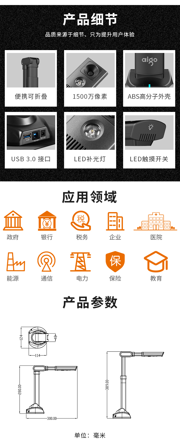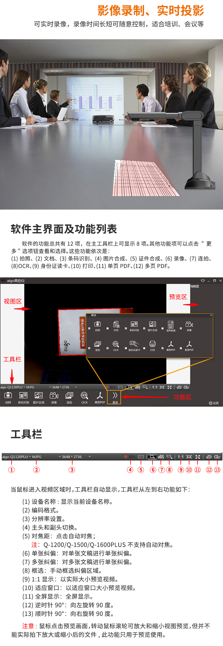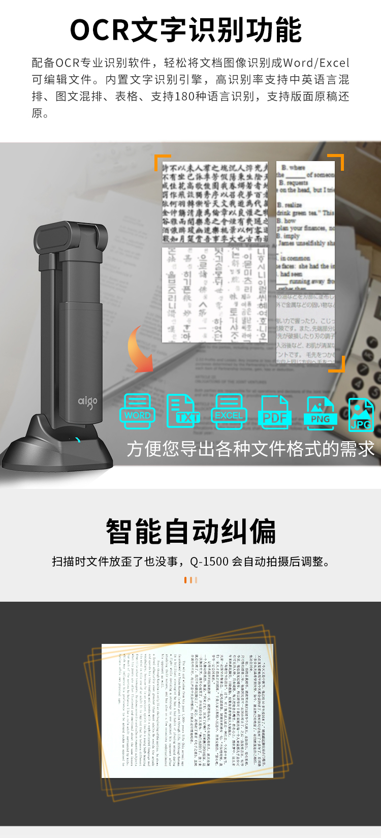 愛國者(aigo)Q-1500高拍儀掃描儀高速掃描項目工程投招標速拍儀1500萬高清像素單攝像A3/A4幅面可折疊送軟底