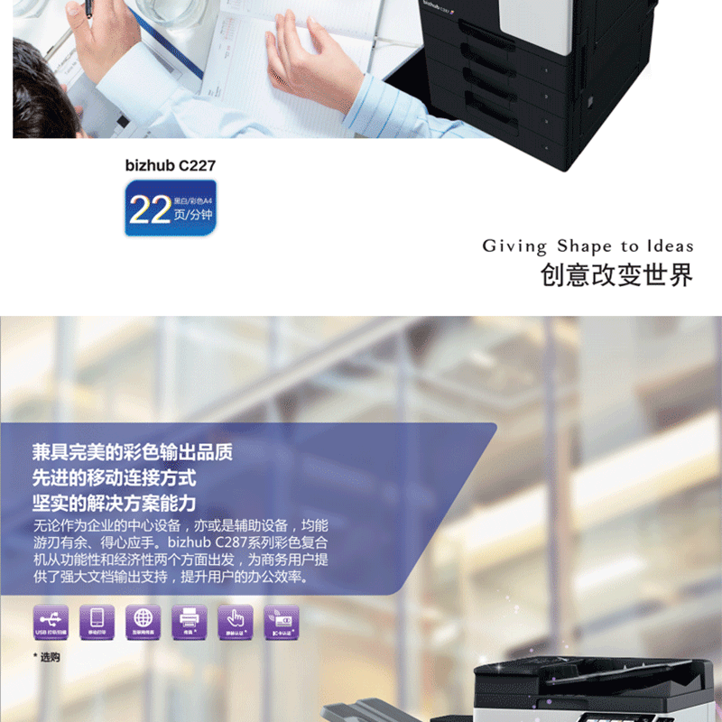 柯尼卡美能達(dá)(KONICA MINOLTA) C227 A3彩色一體機(jī)復(fù)合機(jī)(含輸稿器)