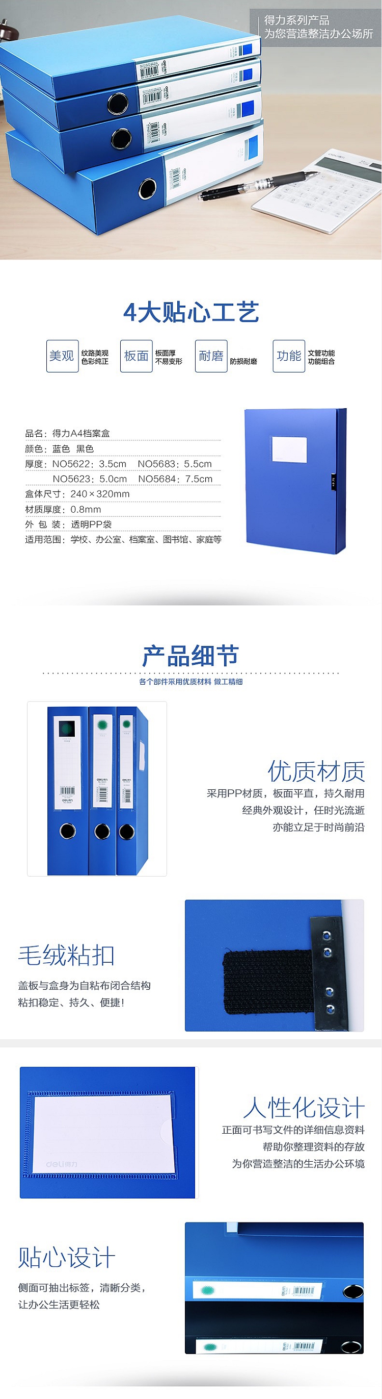 得力(deli)A4/75mm檔案盒5684