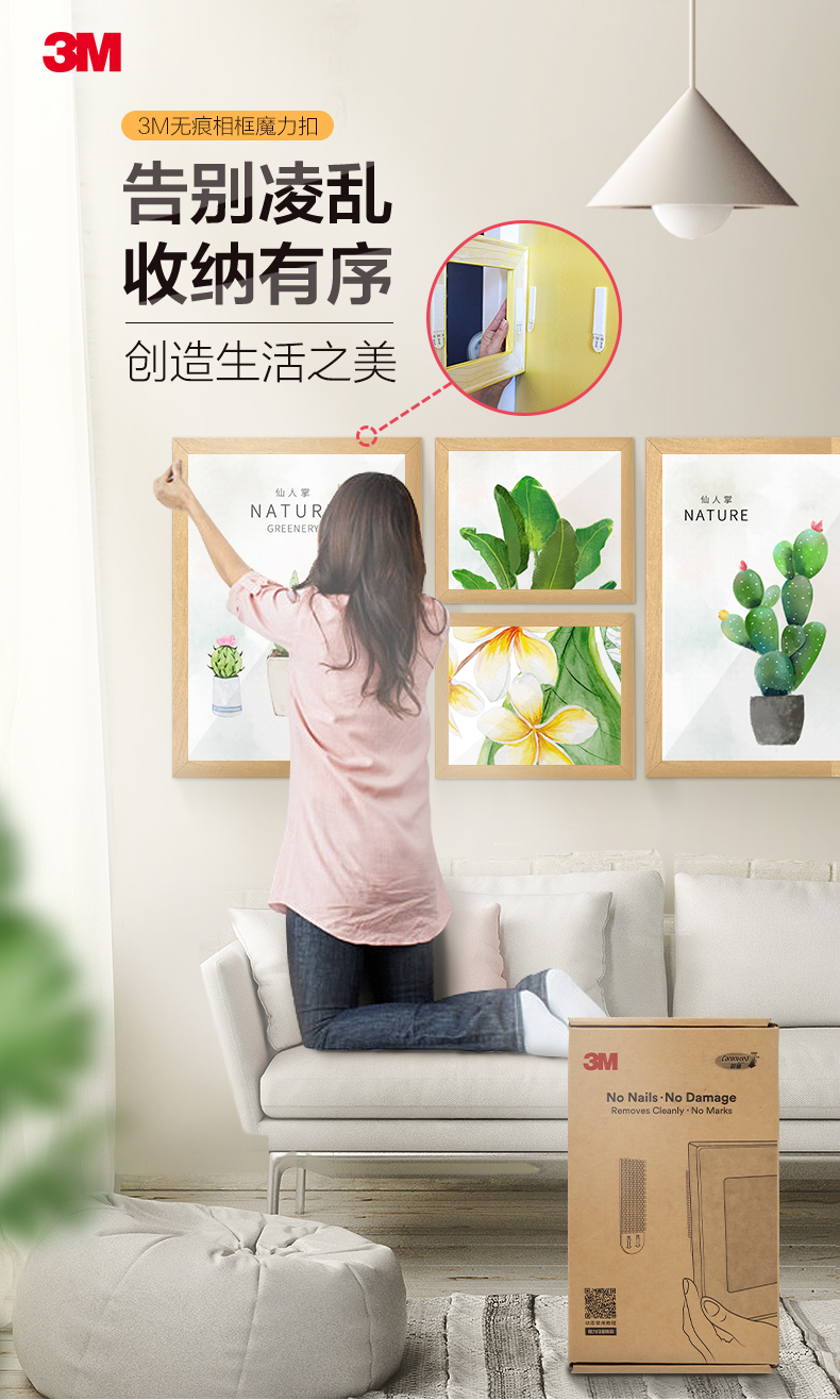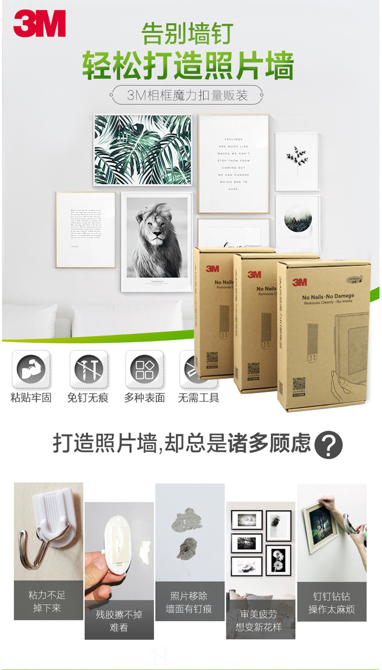 3M高曼魔力扣無痕掛鉤粘 免打孔粘膠照片墻相片婚紗照掛 浴室臥室客廳掛鉤 無痕魔力扣小號(hào)4組