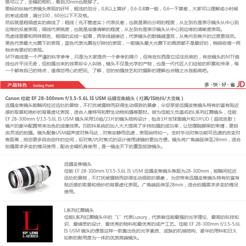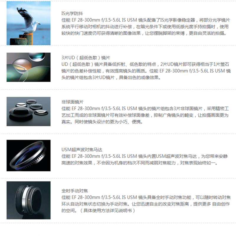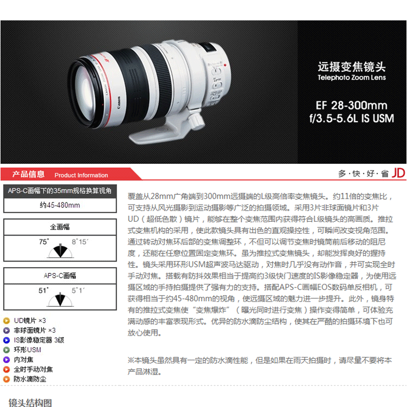 佳能(Canon) EF 28-300mm f/3.5-5.6L IS USM 遠(yuǎn)攝變焦鏡頭