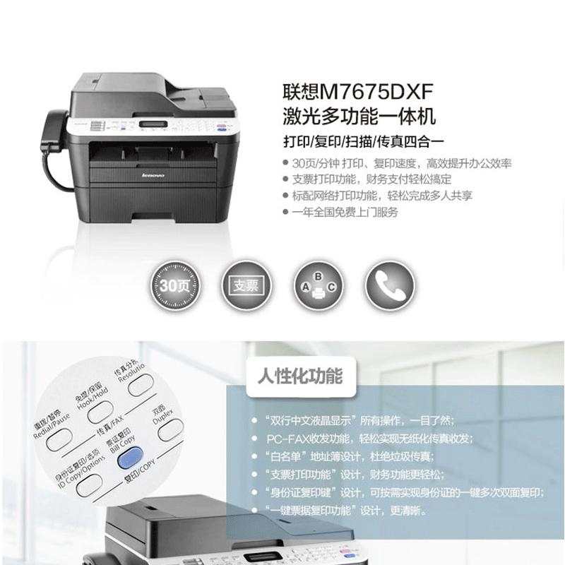 聯(lián)想(Lenovo) M7675DXF 黑白激光一體機(jī)(打印 復(fù)印 掃描 傳真)
