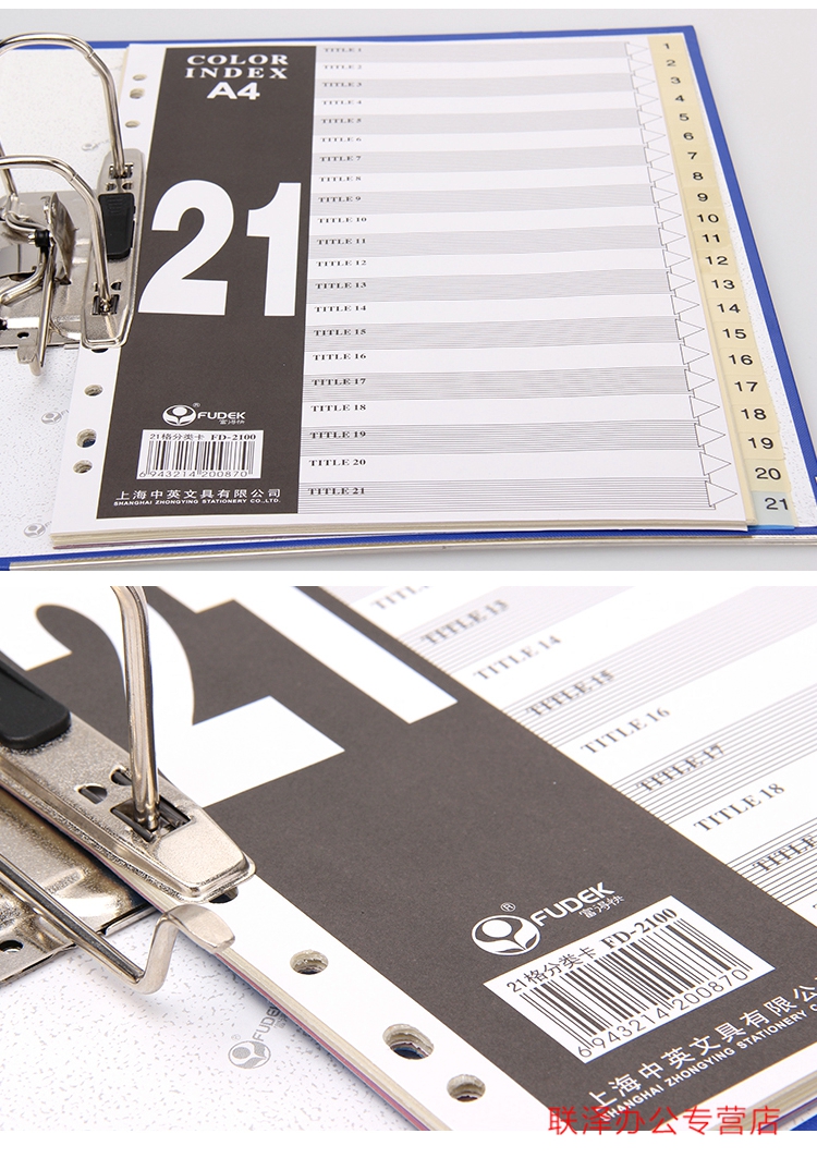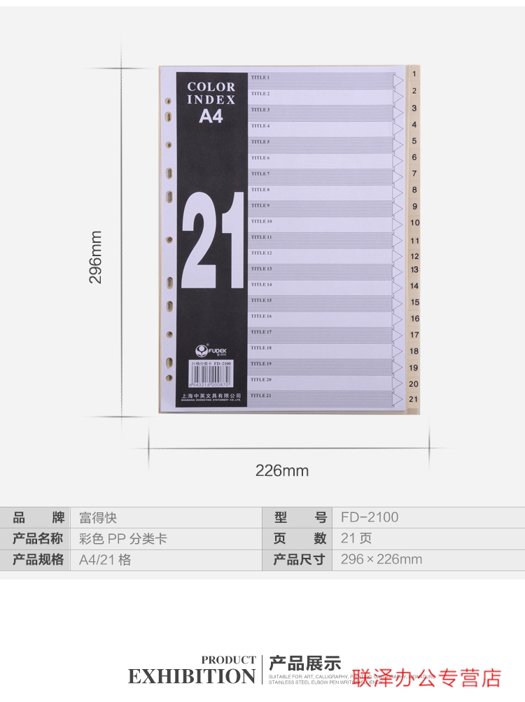 富得快A4索引11孔PP彩色21頁FD2100