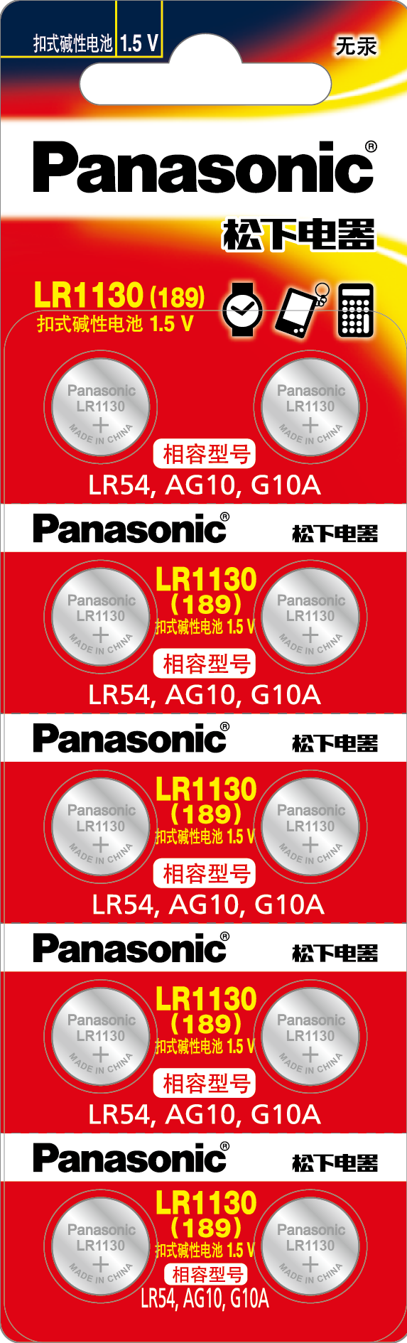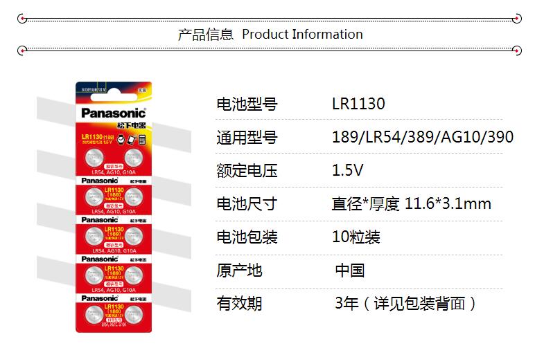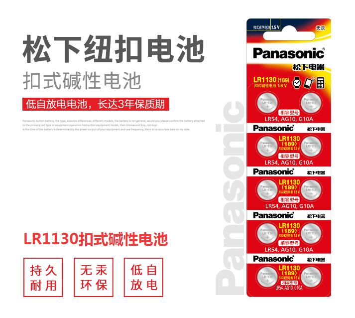 松下(Panasonic)LR1130/189/AG10/LR54/389A扣式電池計算器玩具10粒