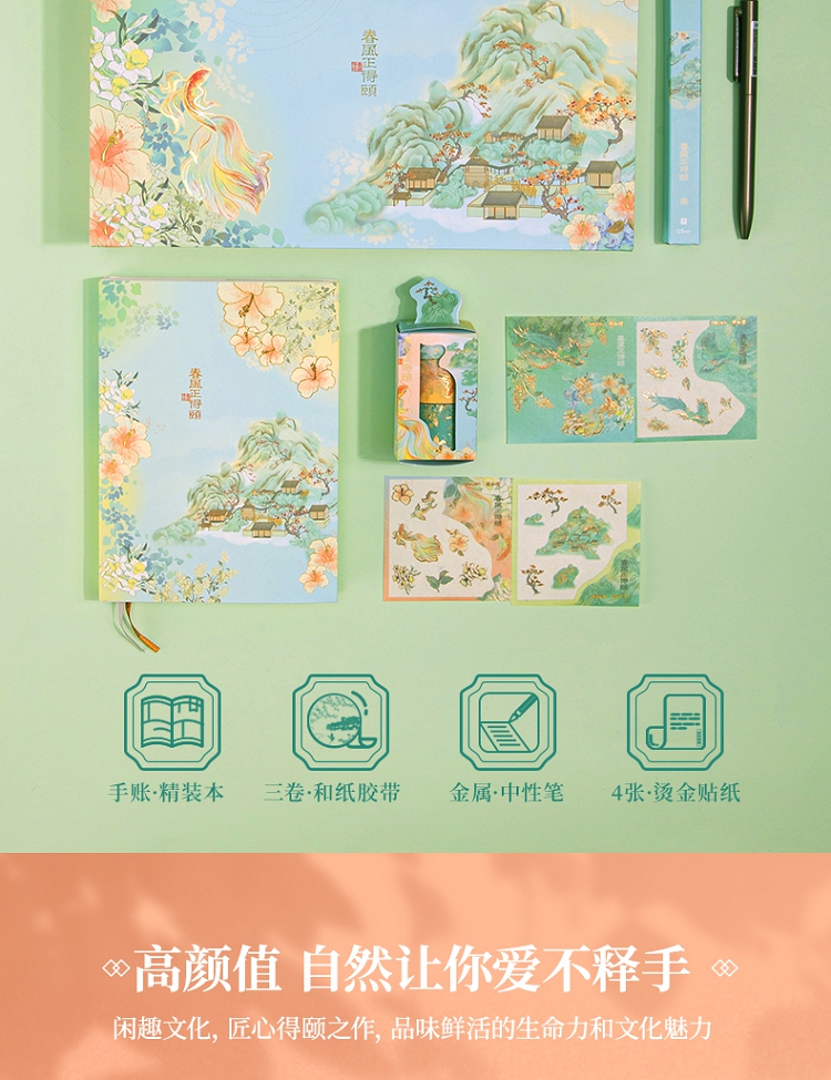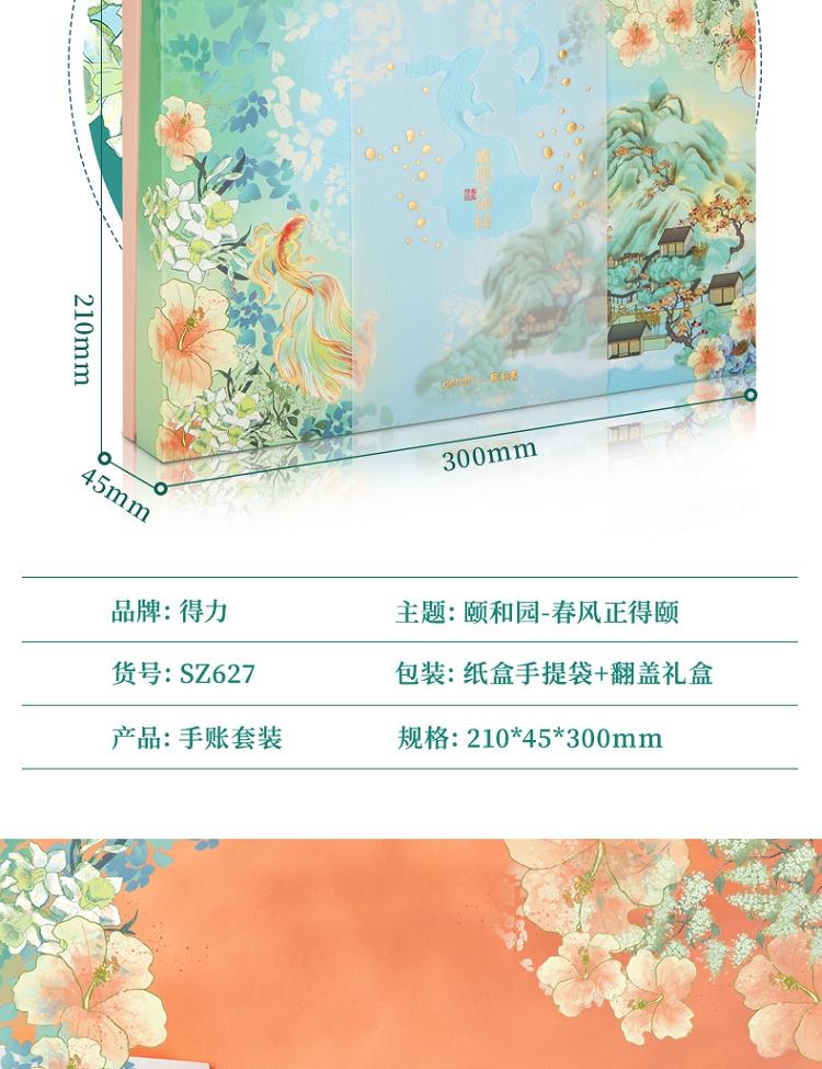 得力(deli) 頤和園聯(lián)名 春風(fēng)正得頤手賬本11件文具禮盒套裝 SZ627