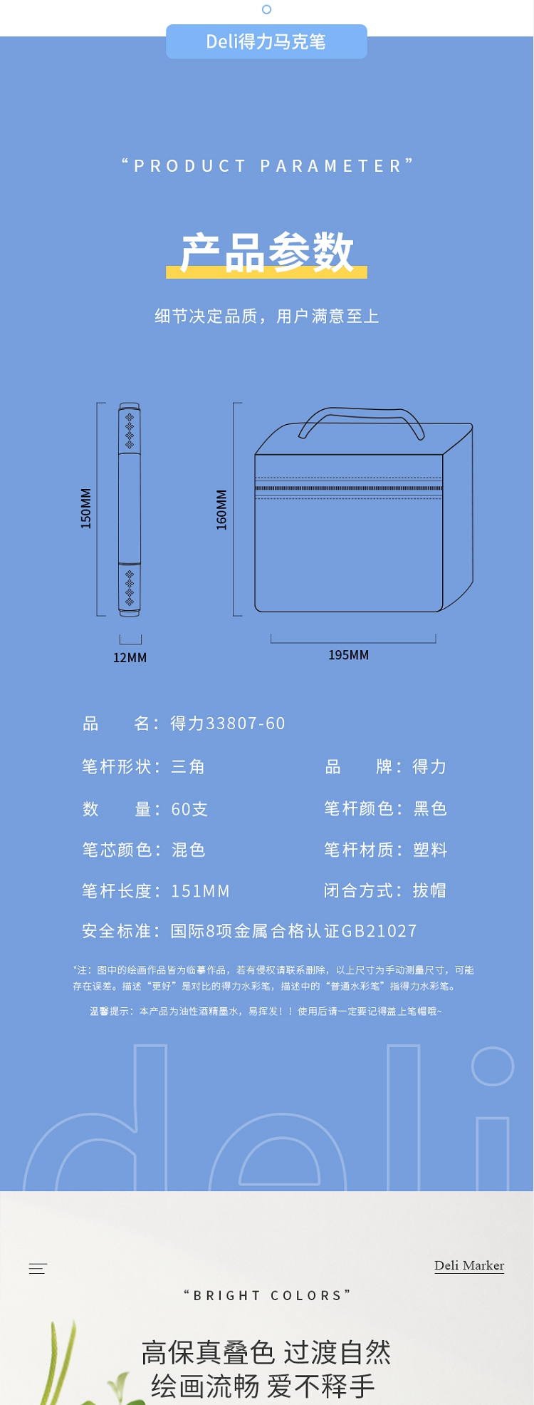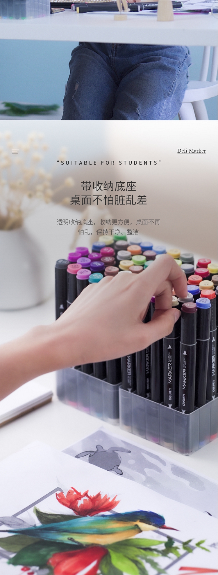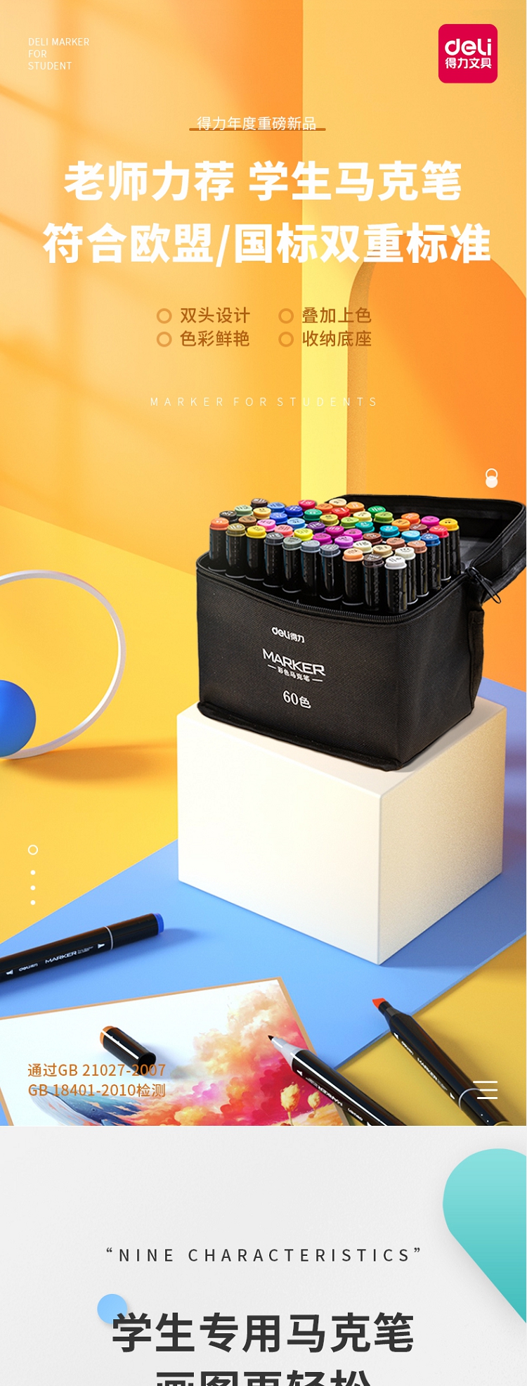 得力(deli) 學(xué)生馬克筆套裝 雙頭速干 鋼琴黑桿 60色 33807-60