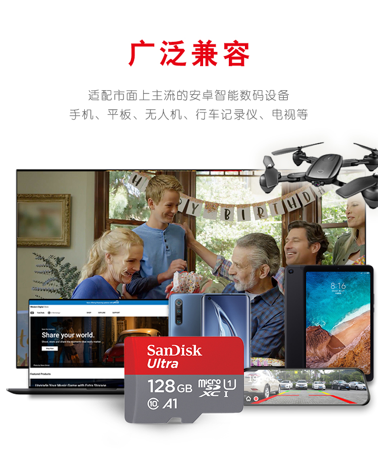 閃迪(SanDisk)128GB TF(MicroSD)存儲(chǔ)卡 U1 C10 A1 至尊高速移動(dòng)版內(nèi)存卡