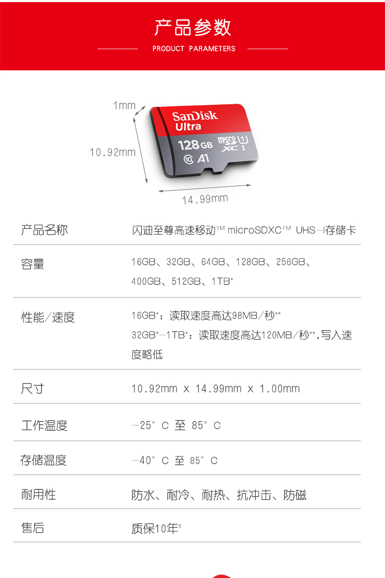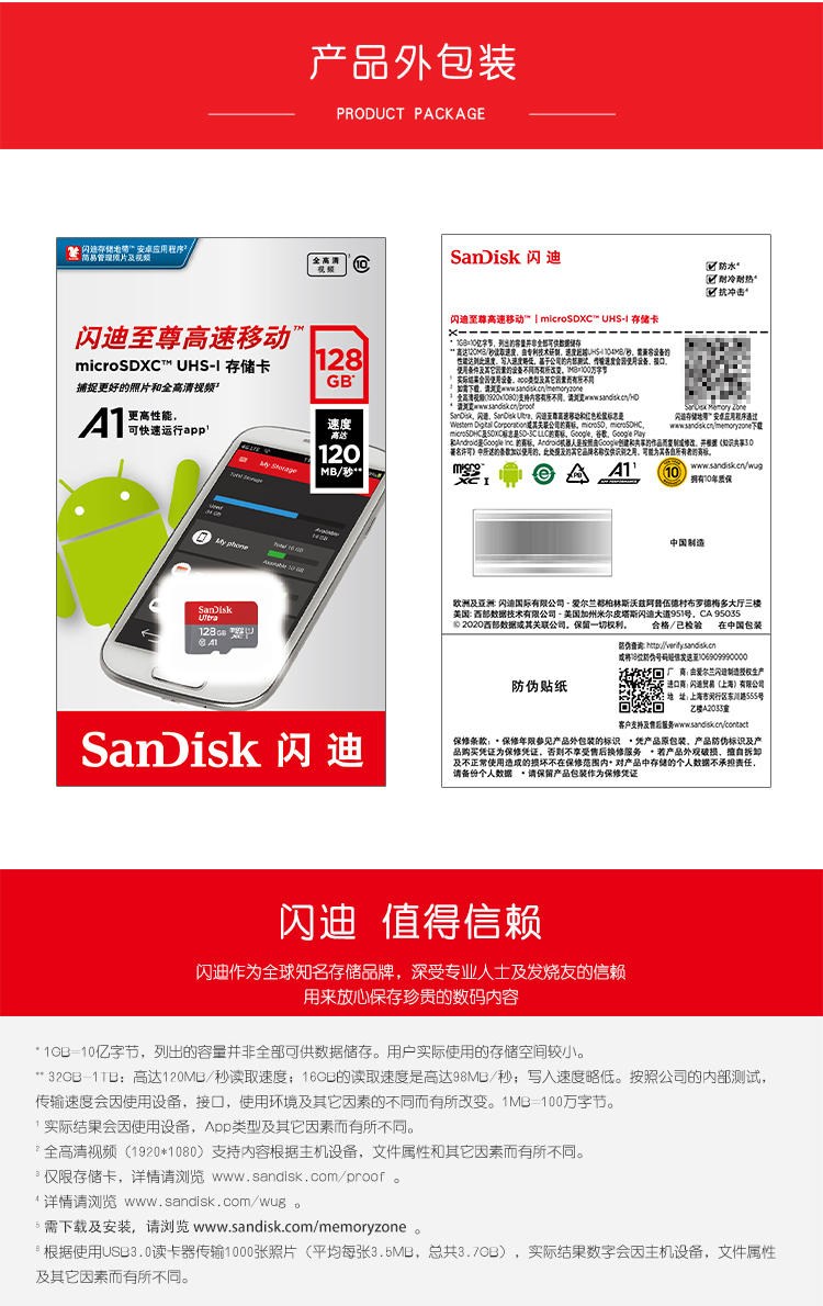 閃迪(SanDisk) A1 讀速100MB/s 至尊高速移動(dòng)MicroSDHC UHS-I存儲(chǔ)卡 TF卡 (128GB)