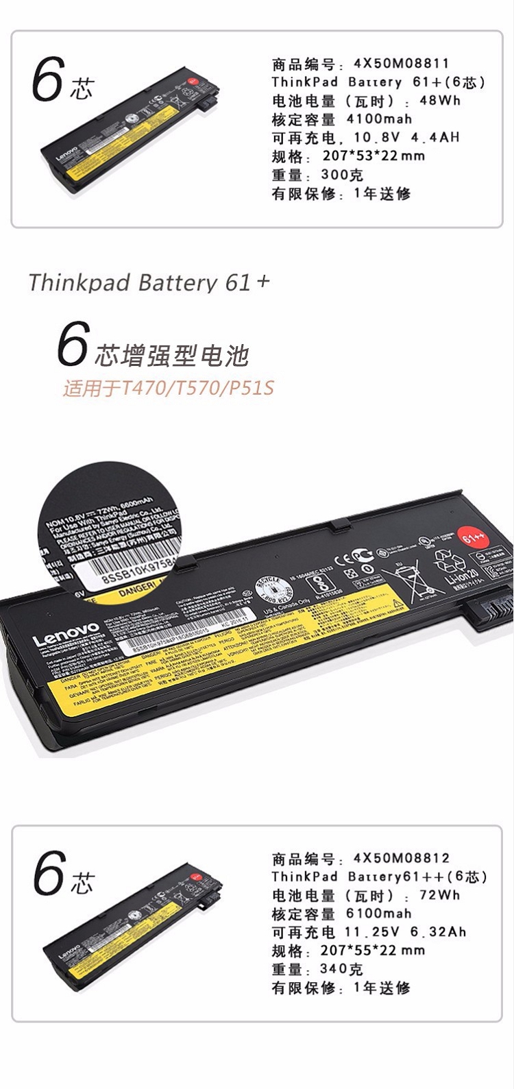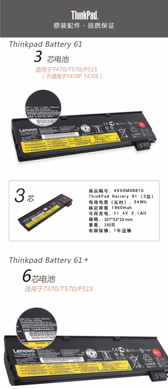 ThinkPad 聯(lián)想原裝筆記本 電池T470/T570/P51s專用 4X50M08810(3芯)