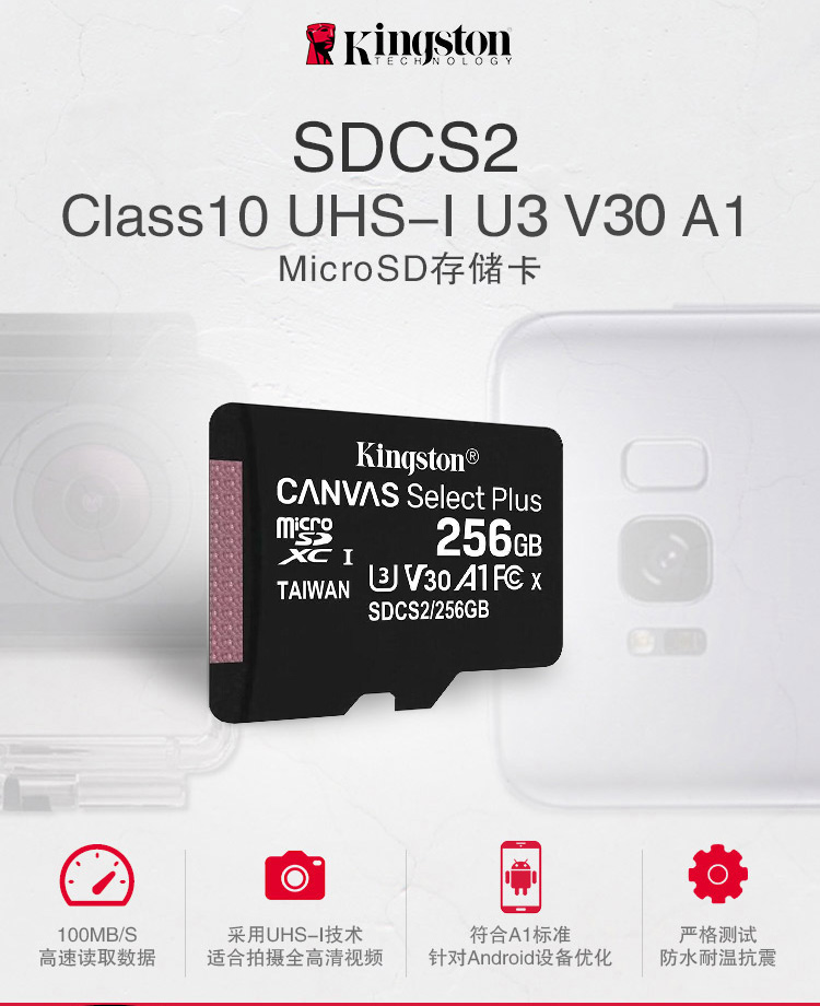 金士頓(Kingston)256GB A1 V30 U3 switch內(nèi)存卡 讀速100MB/s 寫(xiě)速85MB/s