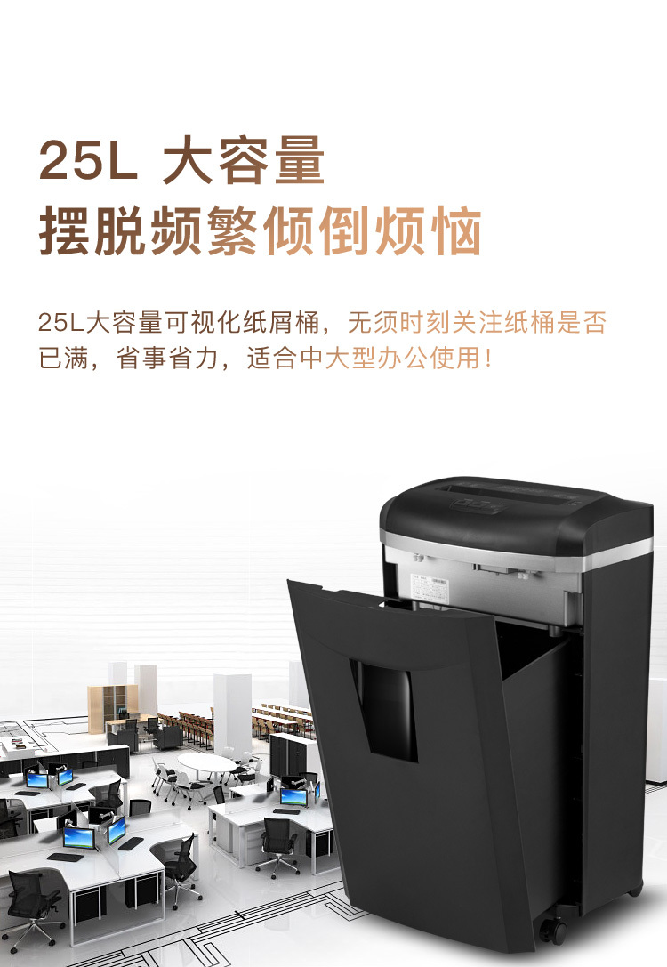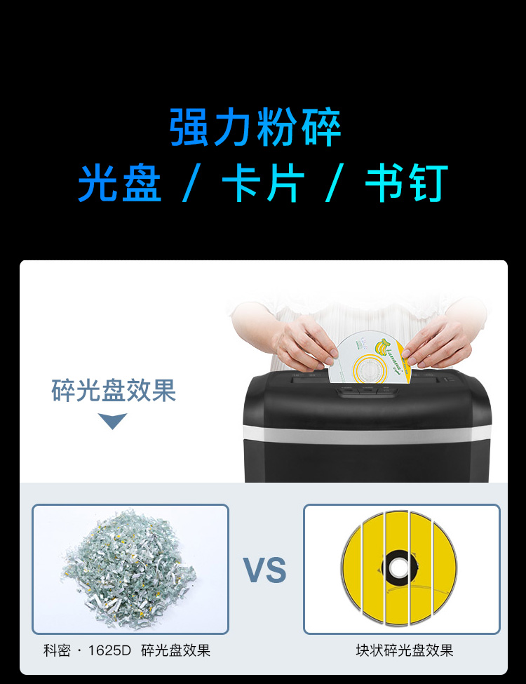 科密(comet)4級保密辦公商用碎紙機(jī)(單次16張 持續(xù)120分鐘 25L 可碎卡、光盤、訂書針)1625D
