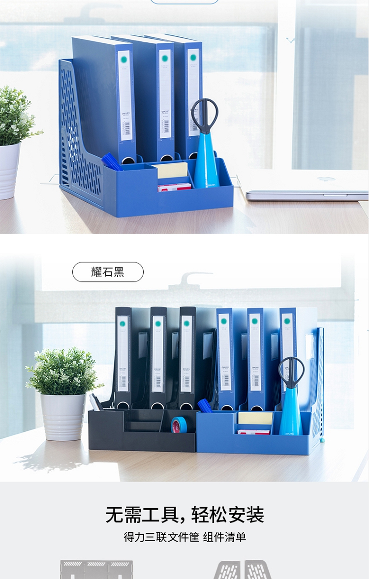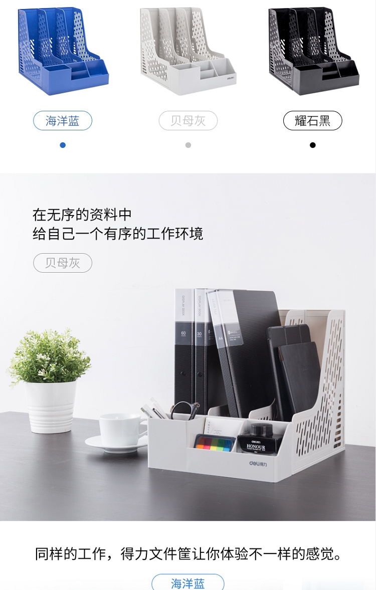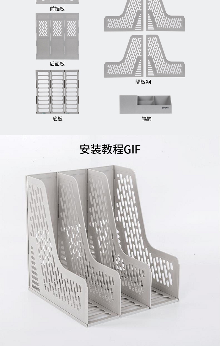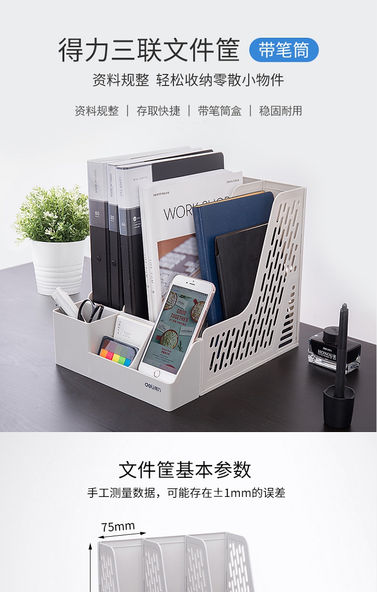 得力(deli)78980三聯(lián)帶筆筒收納桌面文件框 多功能鏤空文件欄/文件框/資料筐