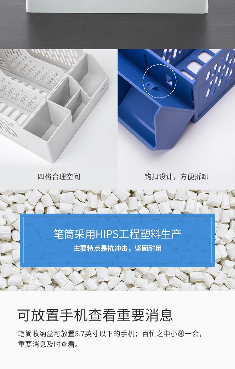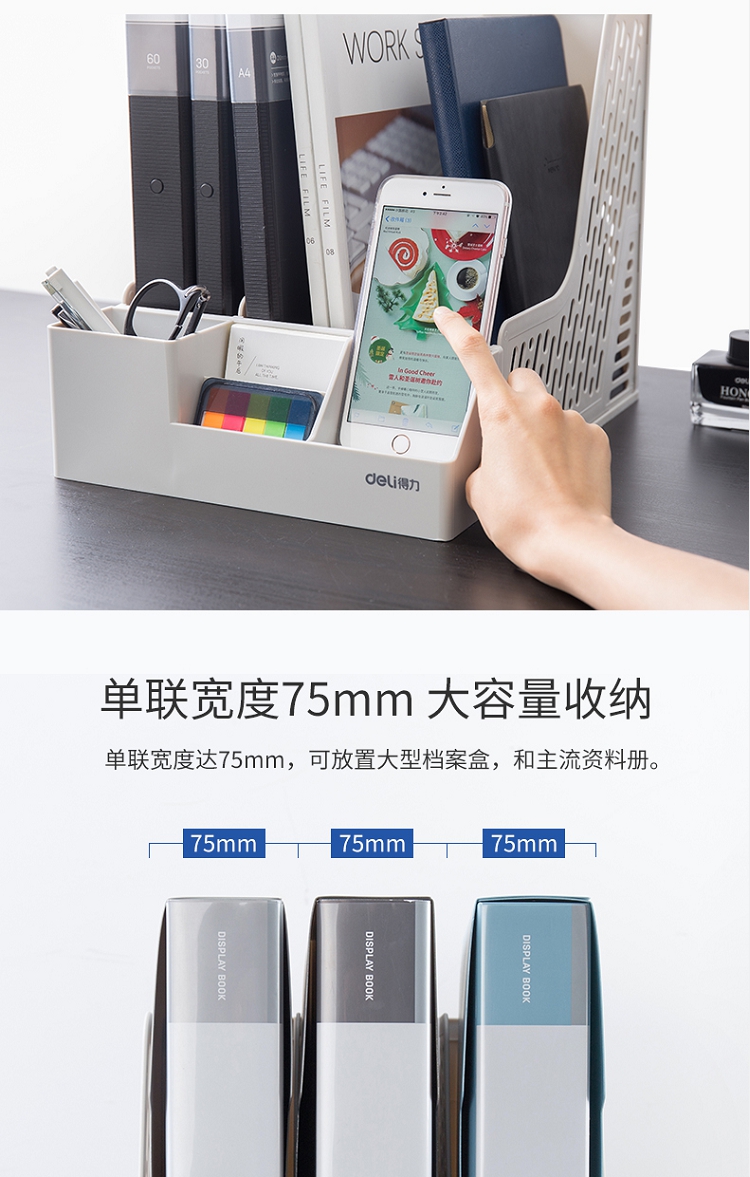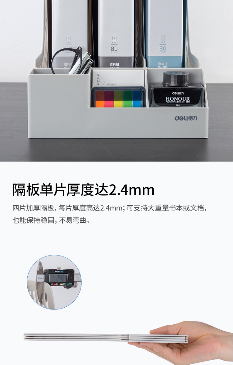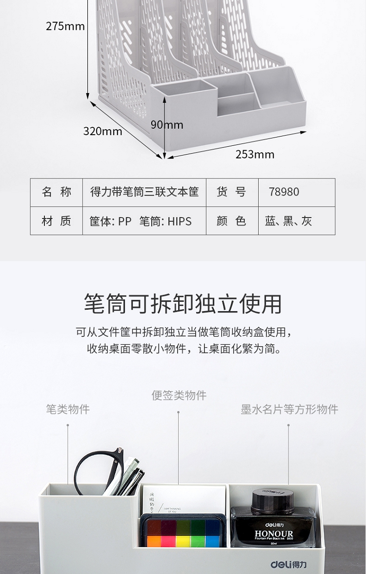 得力(deli)78980三聯(lián)帶筆筒收納桌面文件框 多功能鏤空文件欄/文件框/資料筐