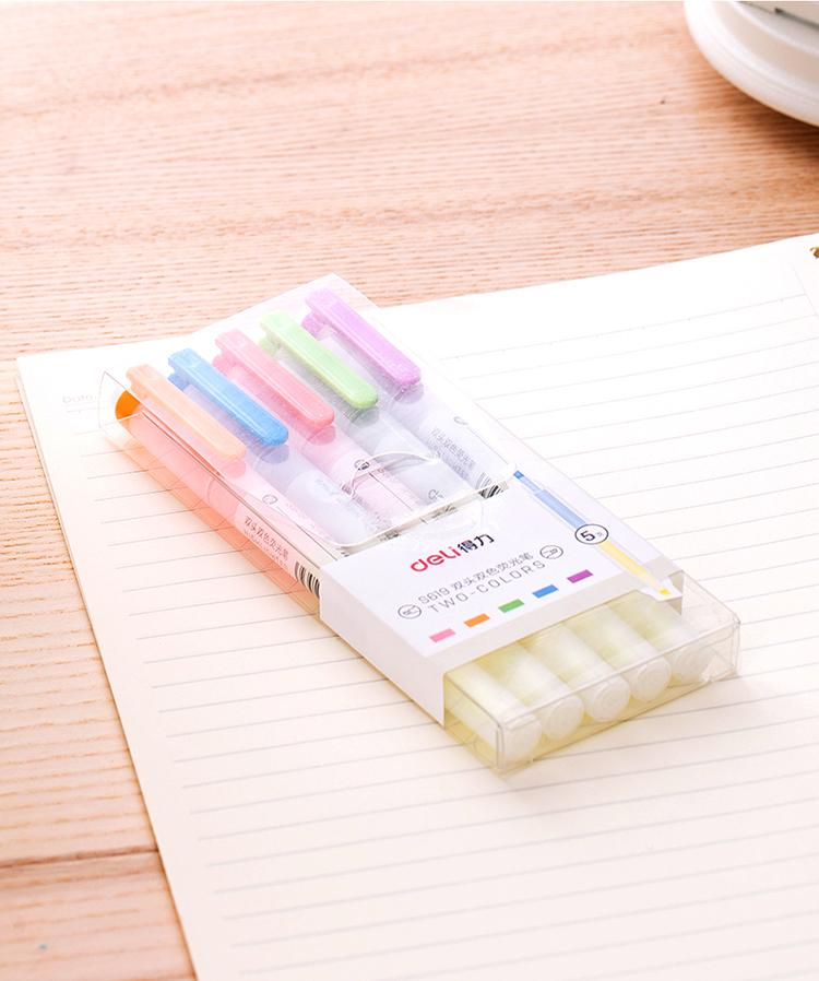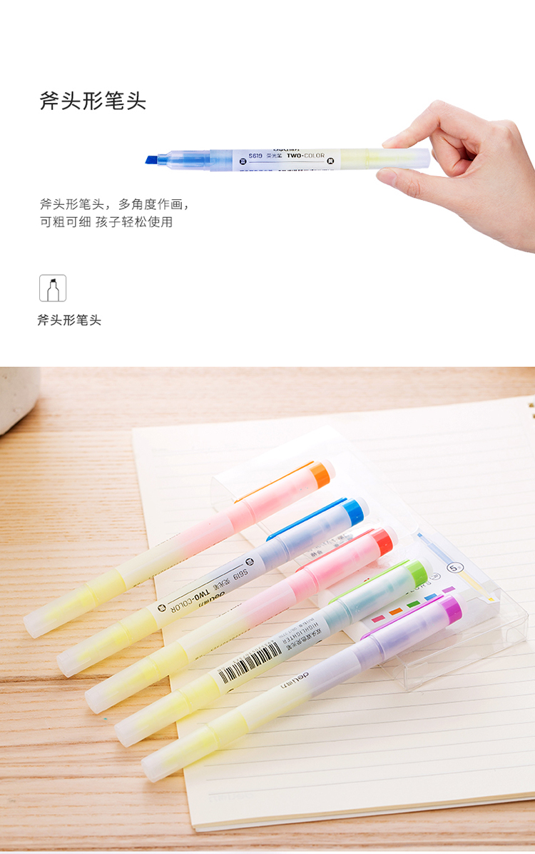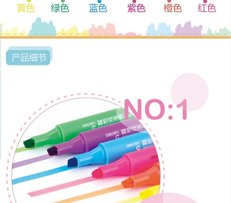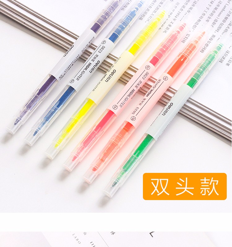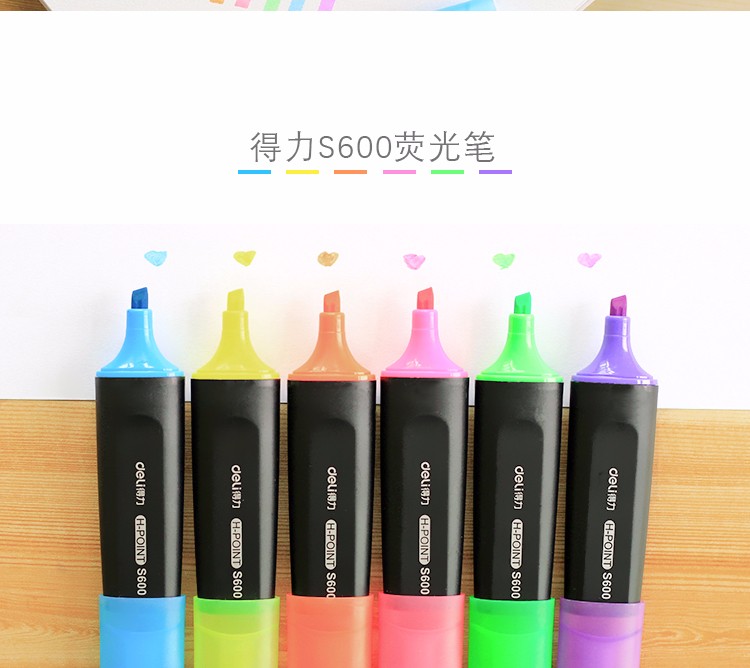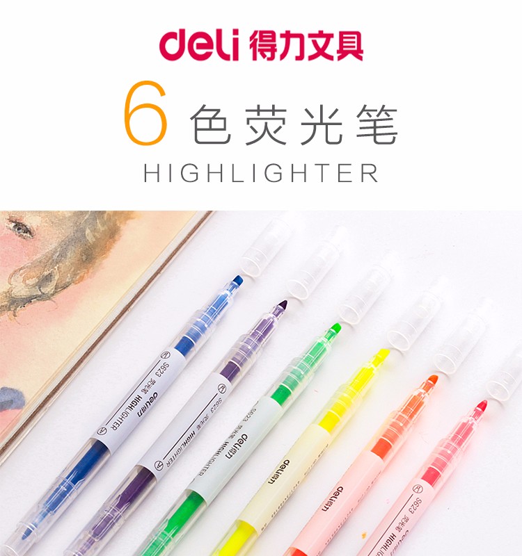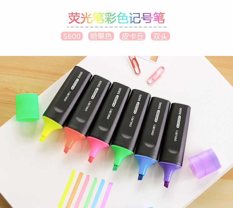 得力(deli)雙頭熒光筆重點(diǎn)醒目劃線筆標(biāo)記筆記號(hào)筆彩色筆套裝辦公學(xué)生文具 6支/盒 三角桿熒光筆S605