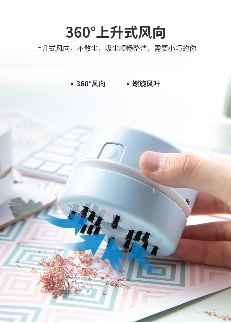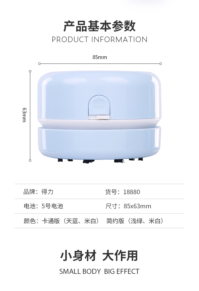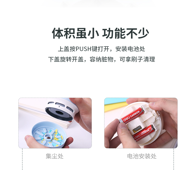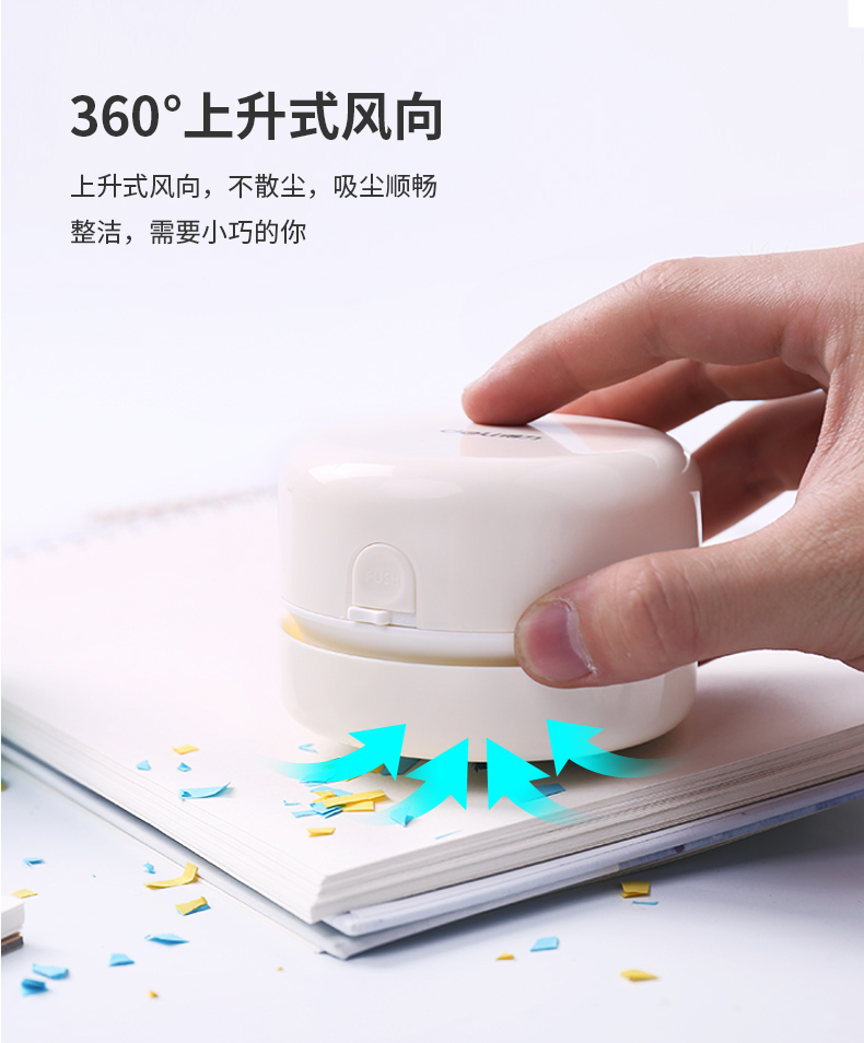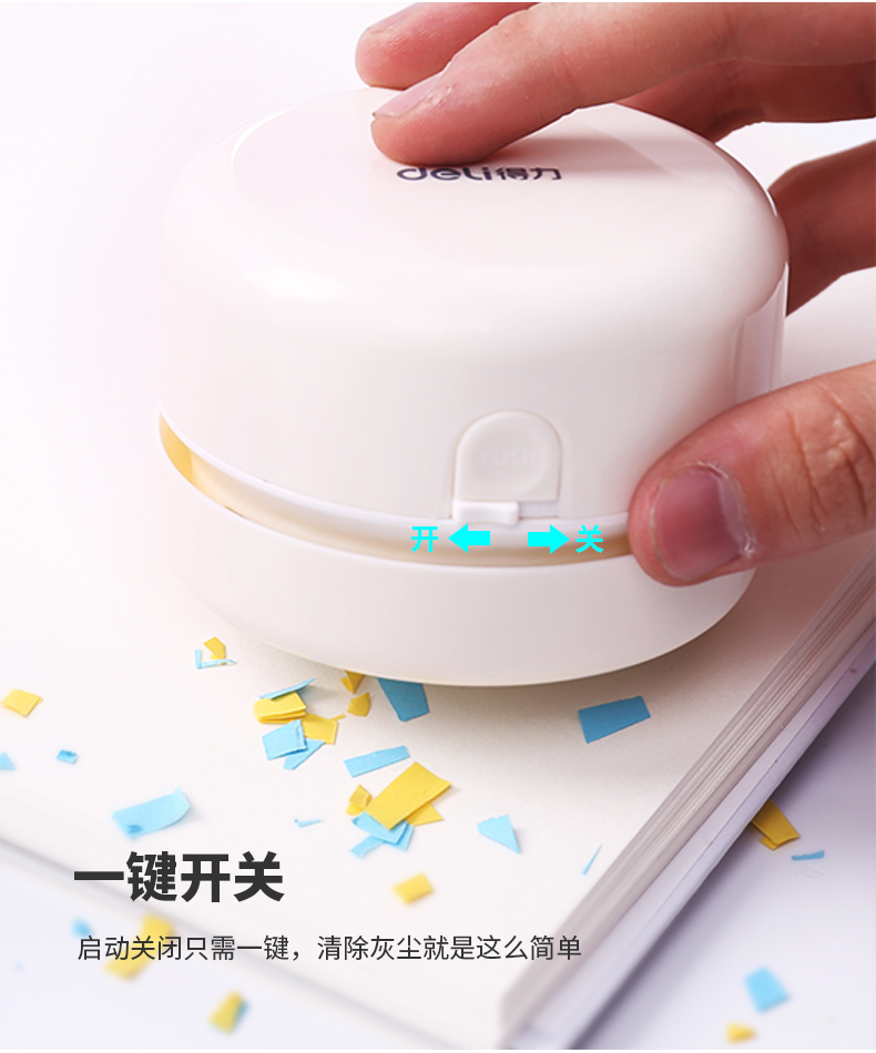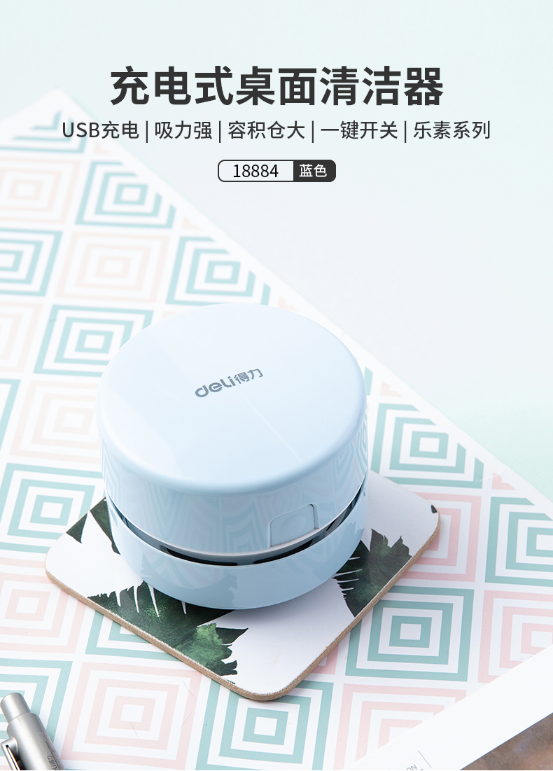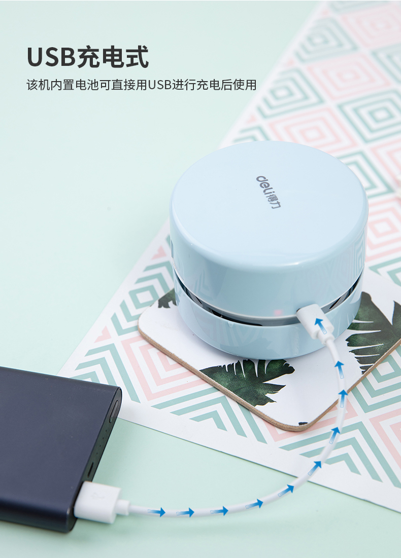 得力 桌面吸塵器電動橡皮擦屑清潔器 淺藍/手提充電款18890