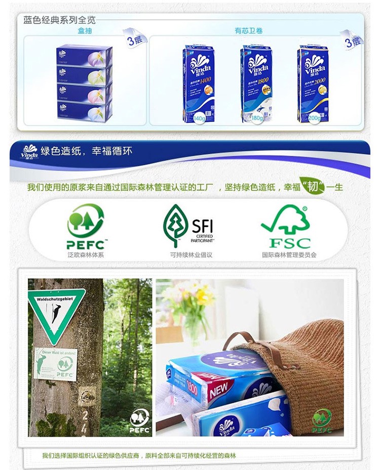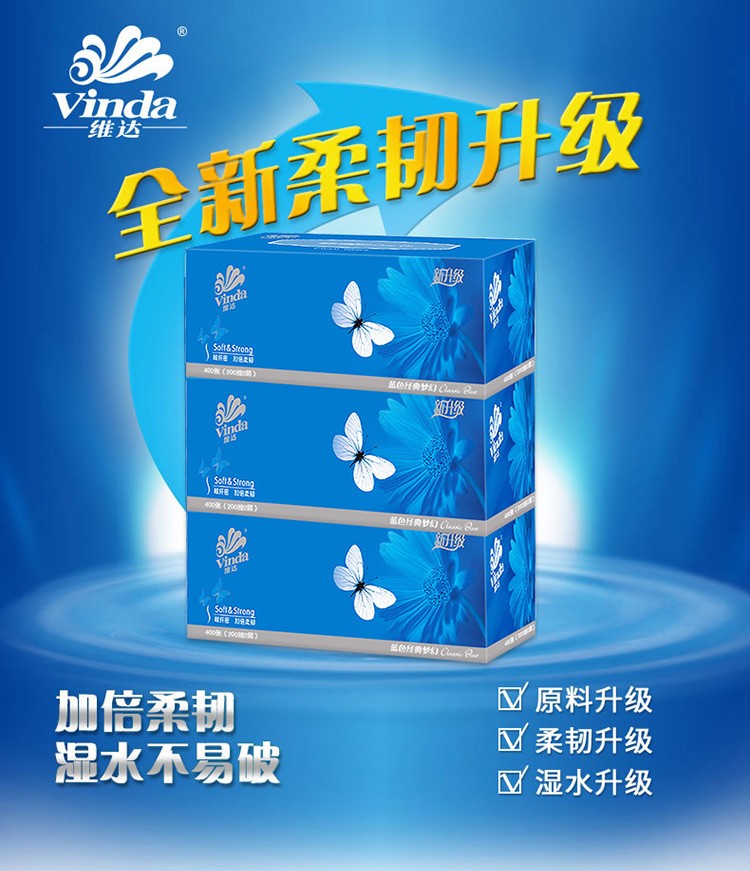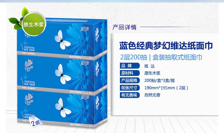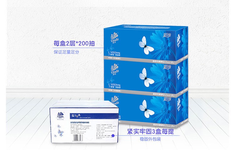 維達(dá)(Vinda) V2046B 藍(lán)色經(jīng)典2層盒裝抽紙面巾紙200抽*3盒