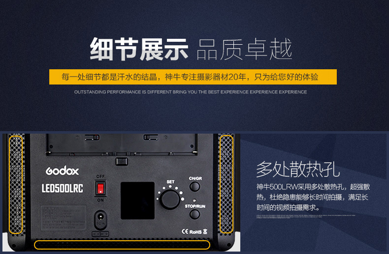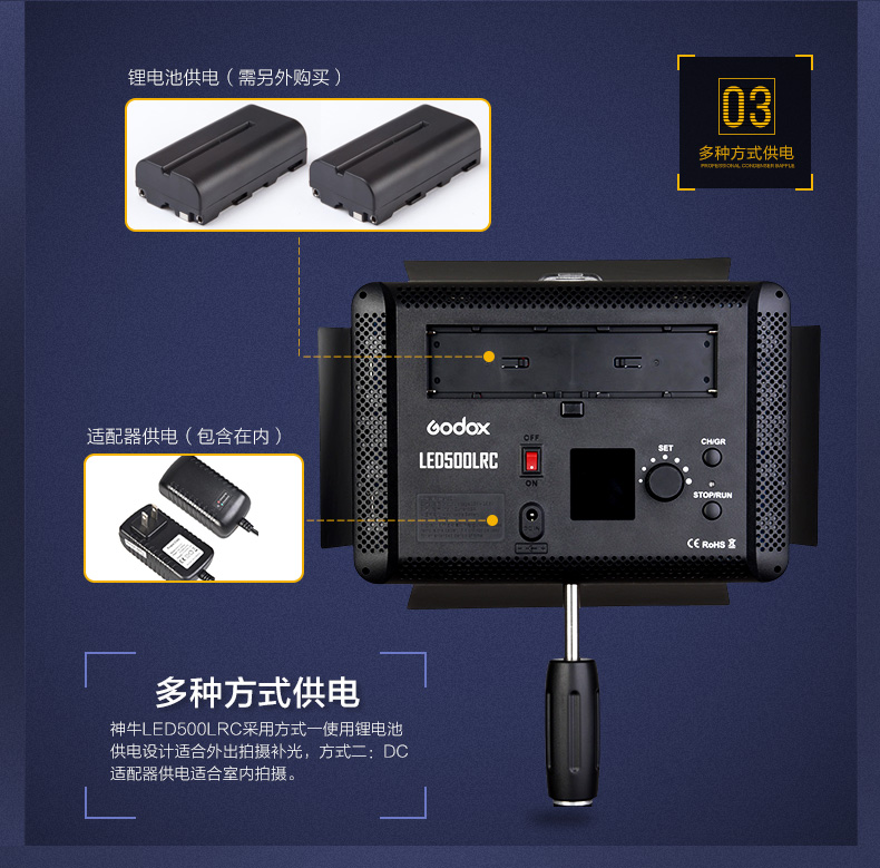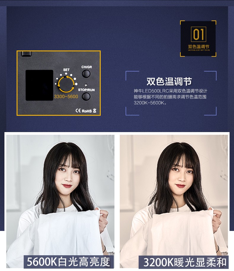 神牛(Godox)LED500補(bǔ)光燈攝影燈led常亮影視燈雙色溫?cái)z像燈影室燈