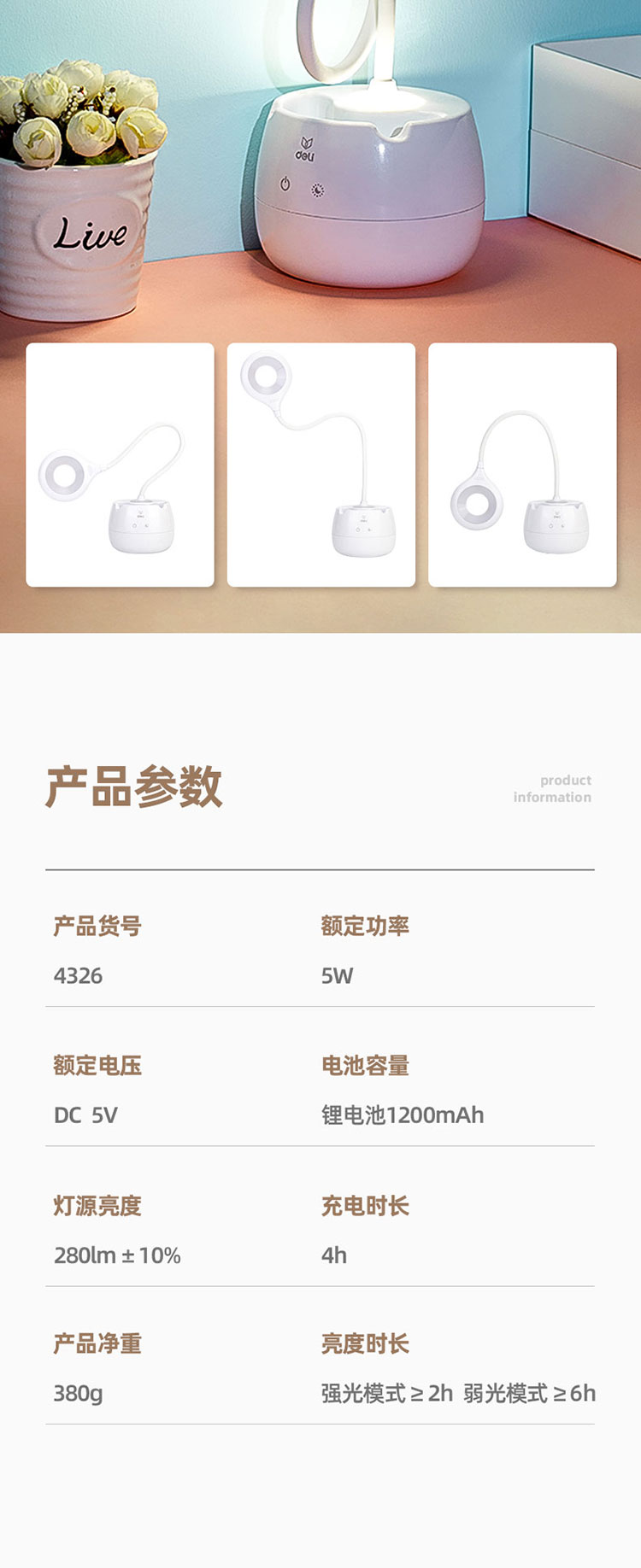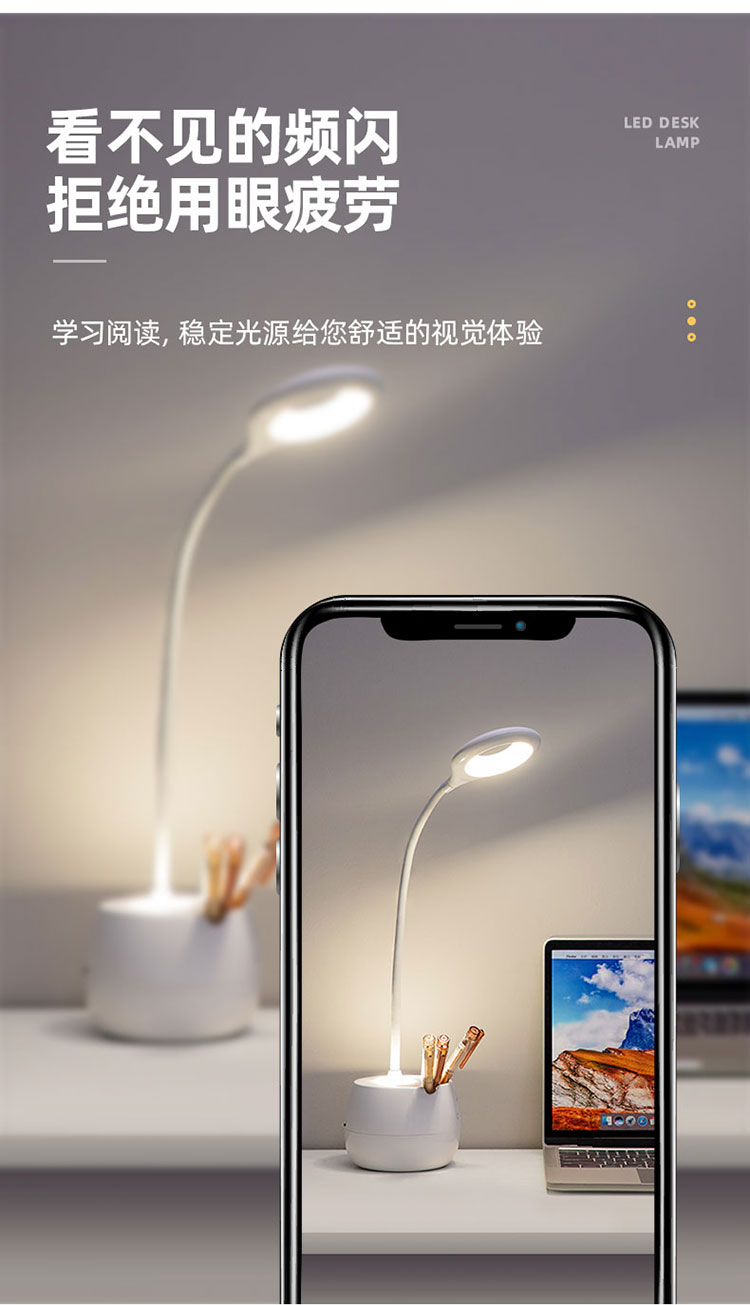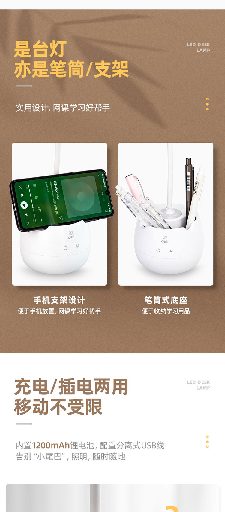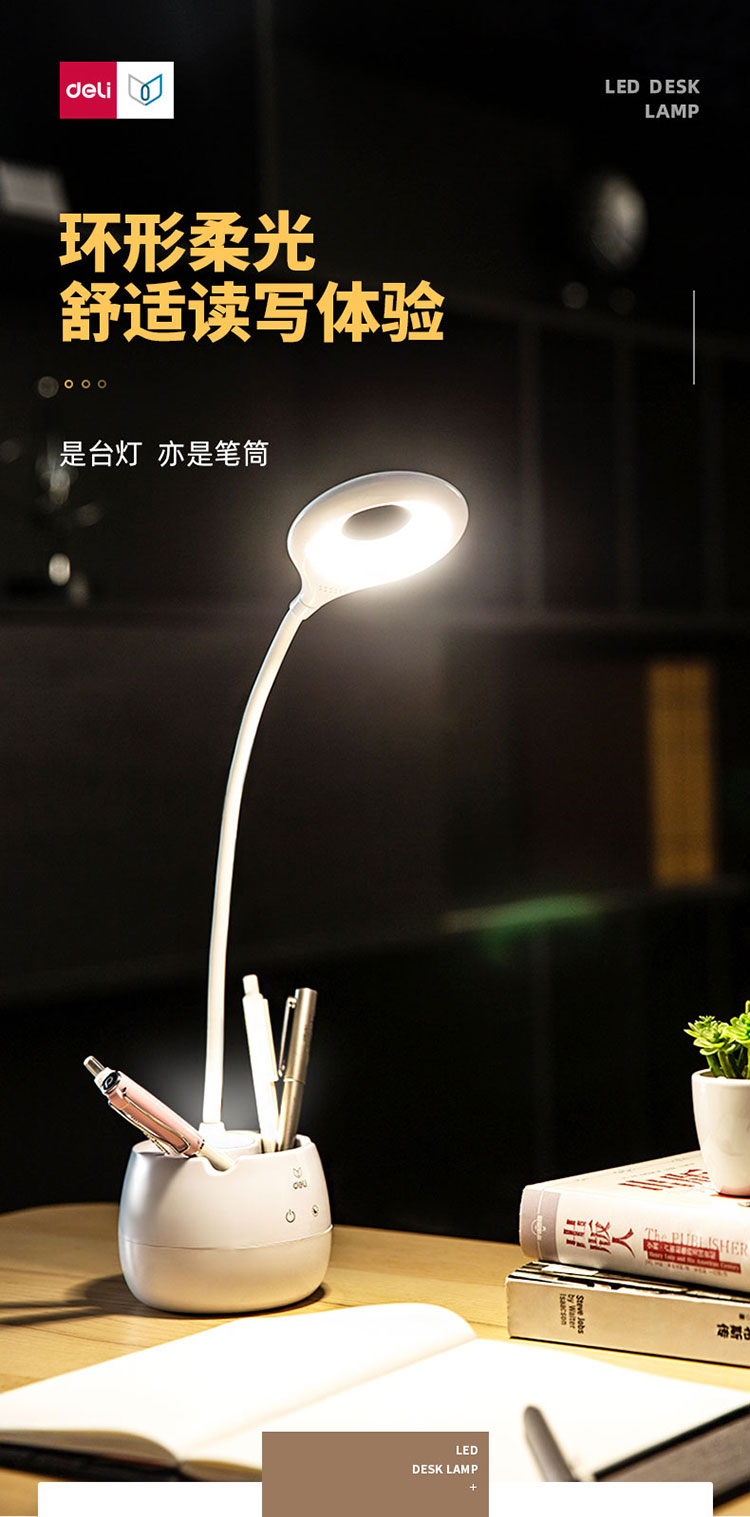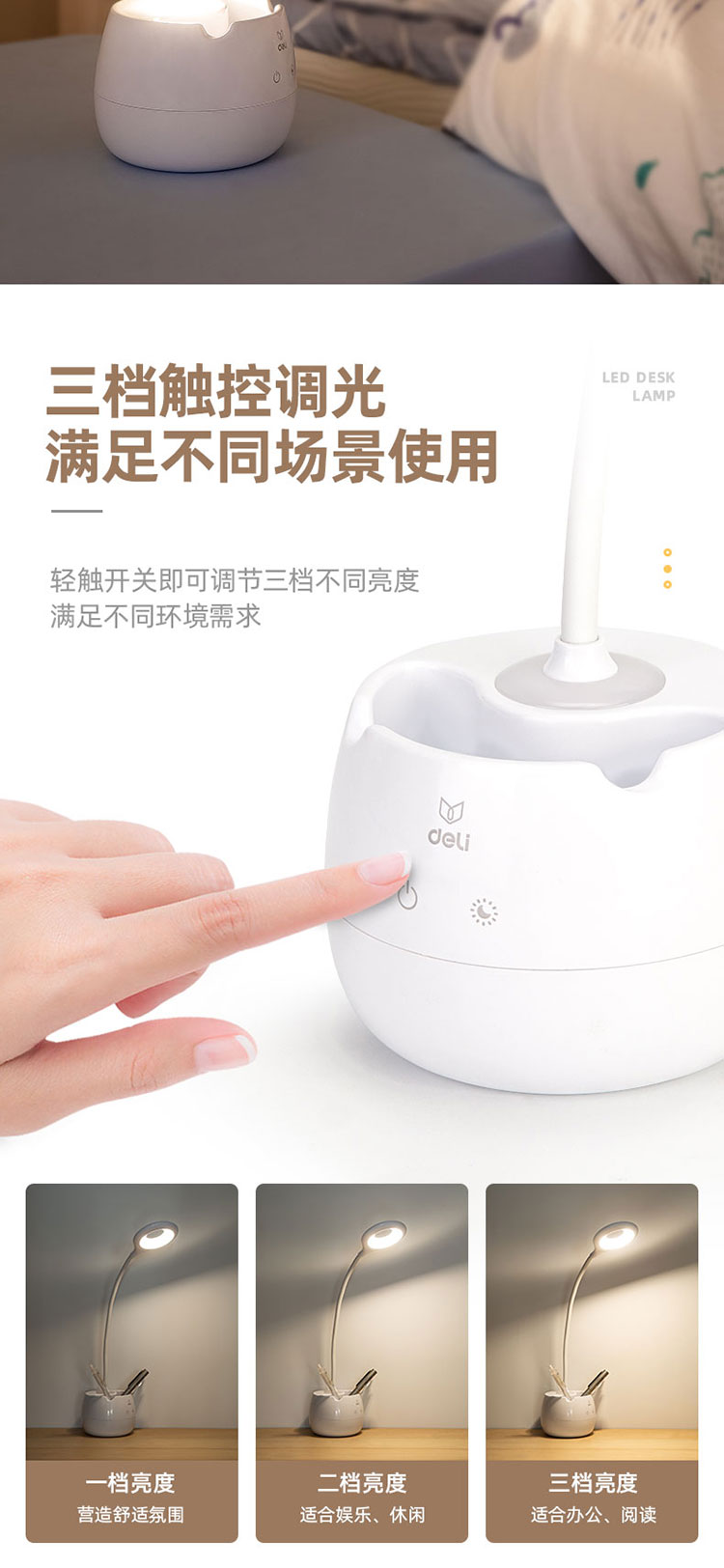 得力(deli)帶筆筒創(chuàng)意護(hù)眼臺(tái)燈 3檔調(diào)節(jié)可當(dāng)夜燈4326