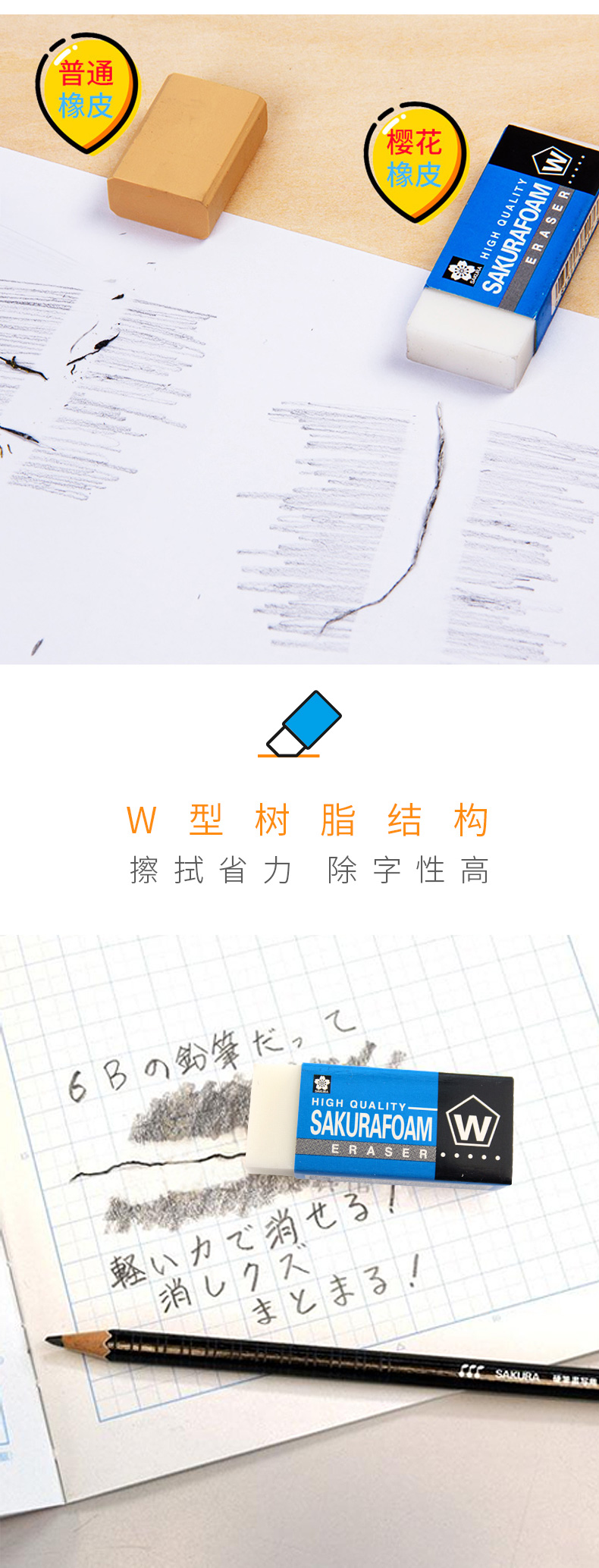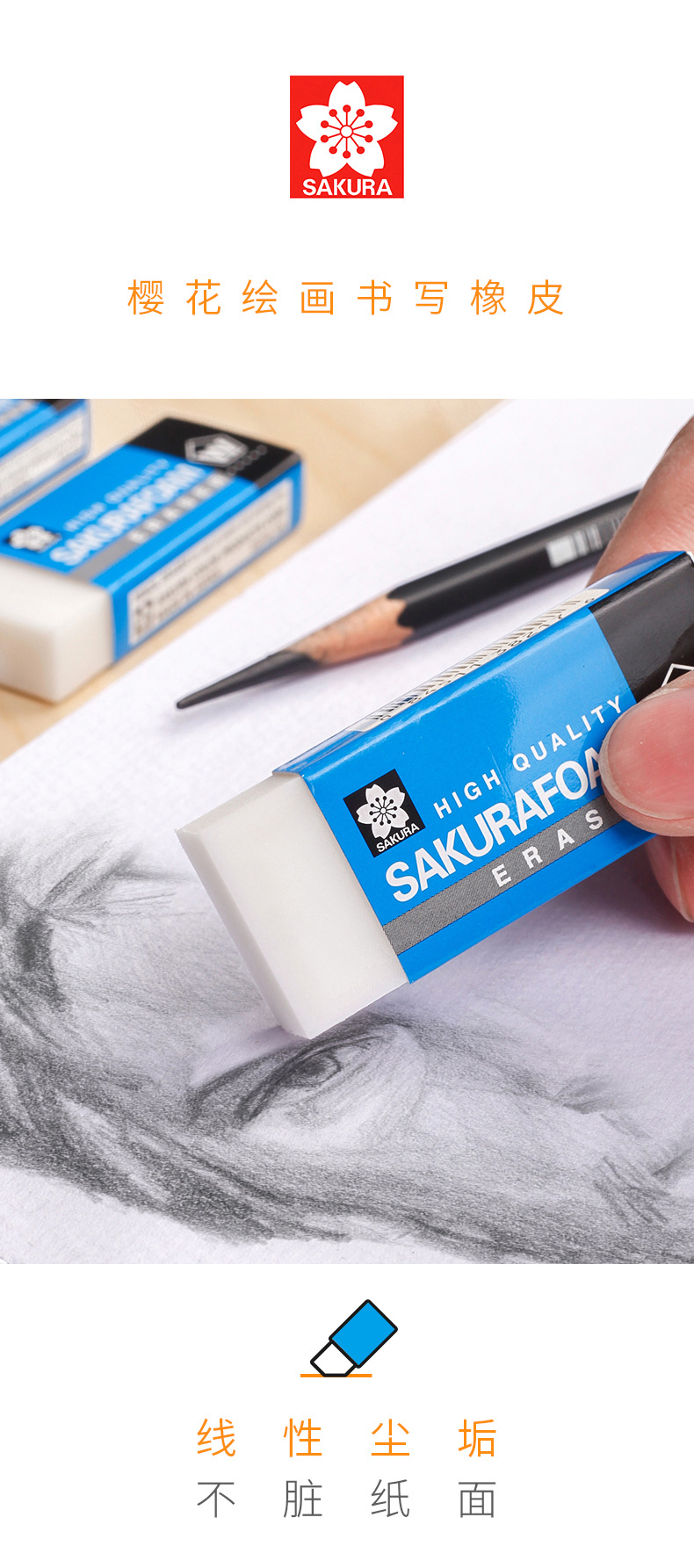 櫻花(SAKURA)橡皮擦學(xué)生考試美術(shù)繪圖 XRFW-100中號單塊
