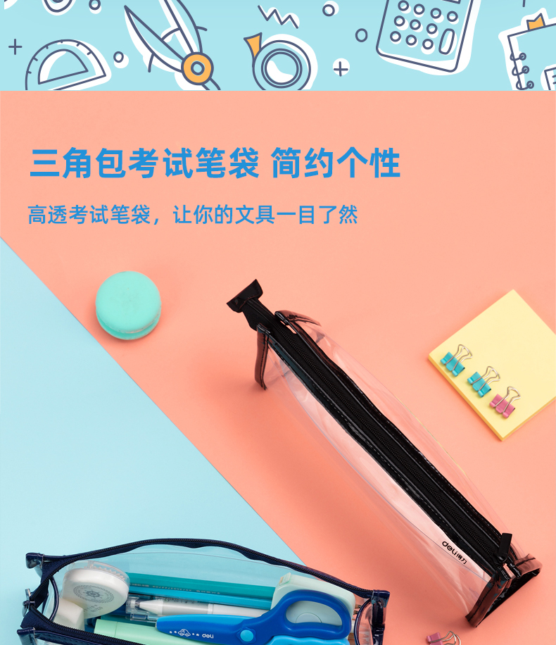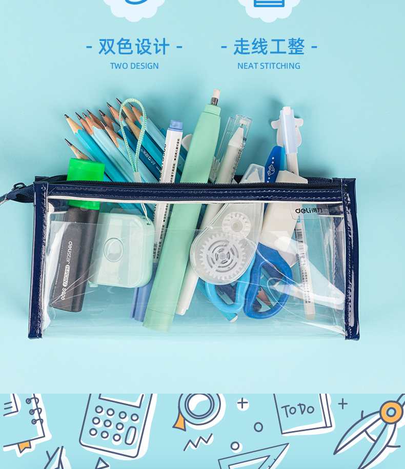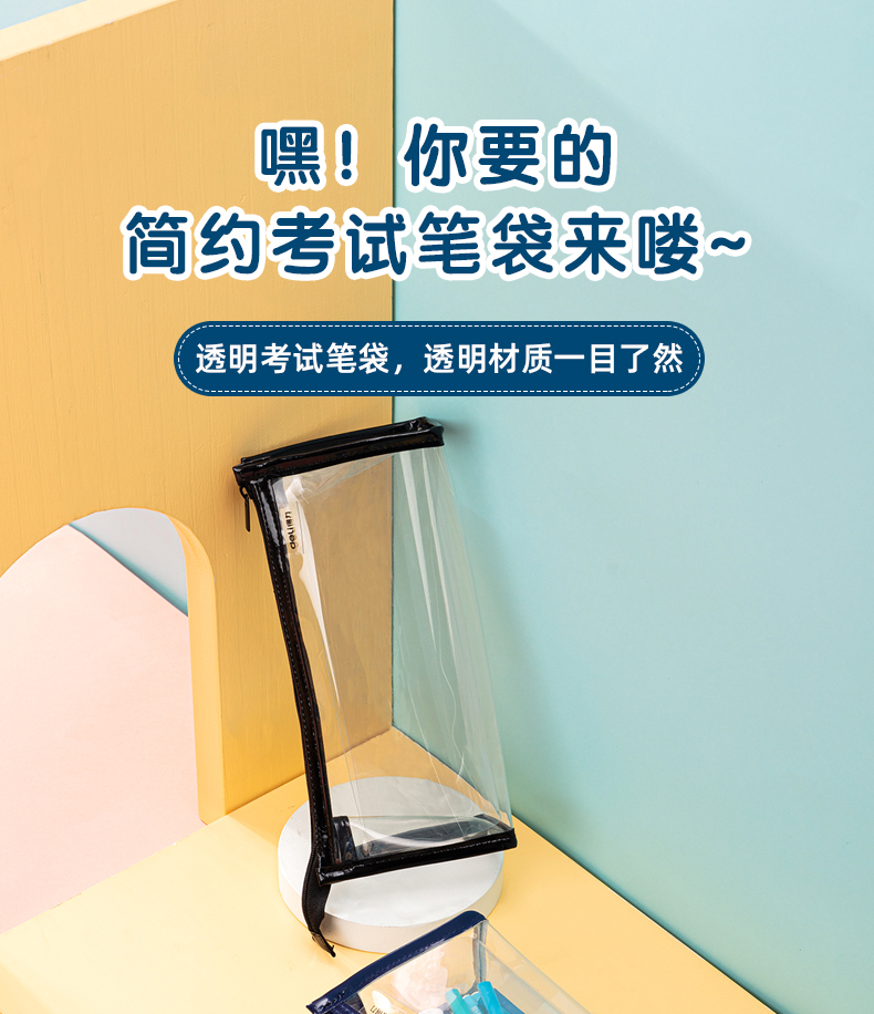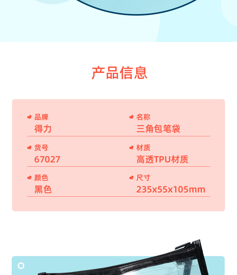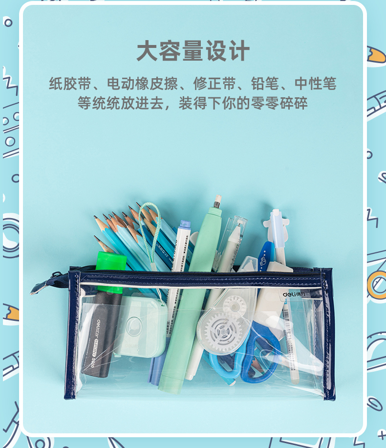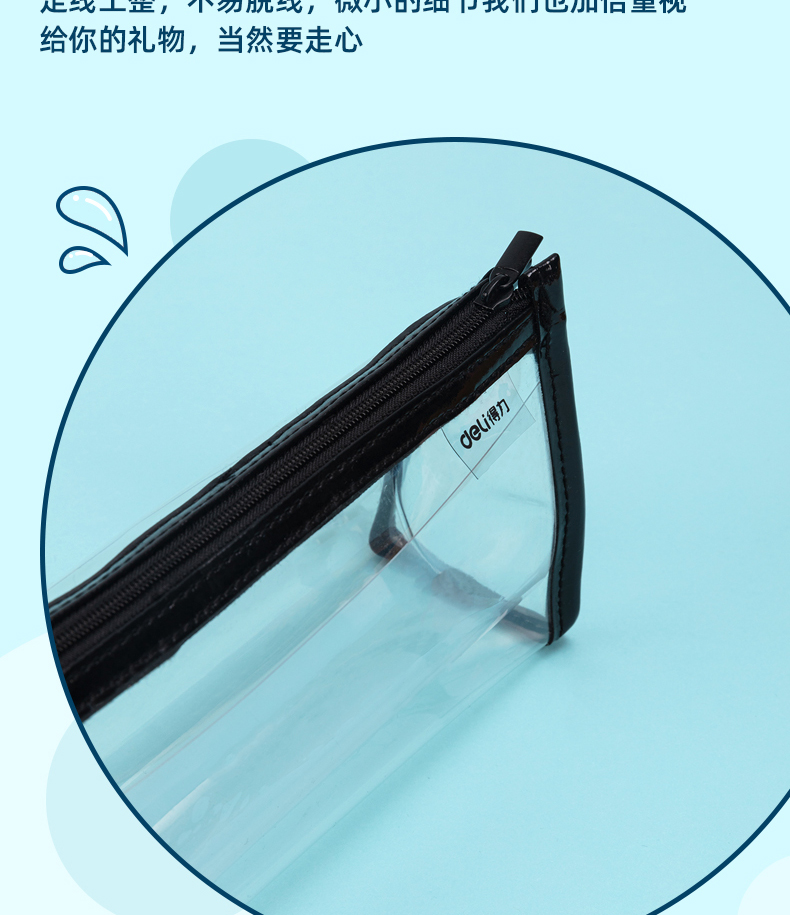 得力(deli)大容量防水學(xué)生鉛筆盒文具盒 黑色 67027