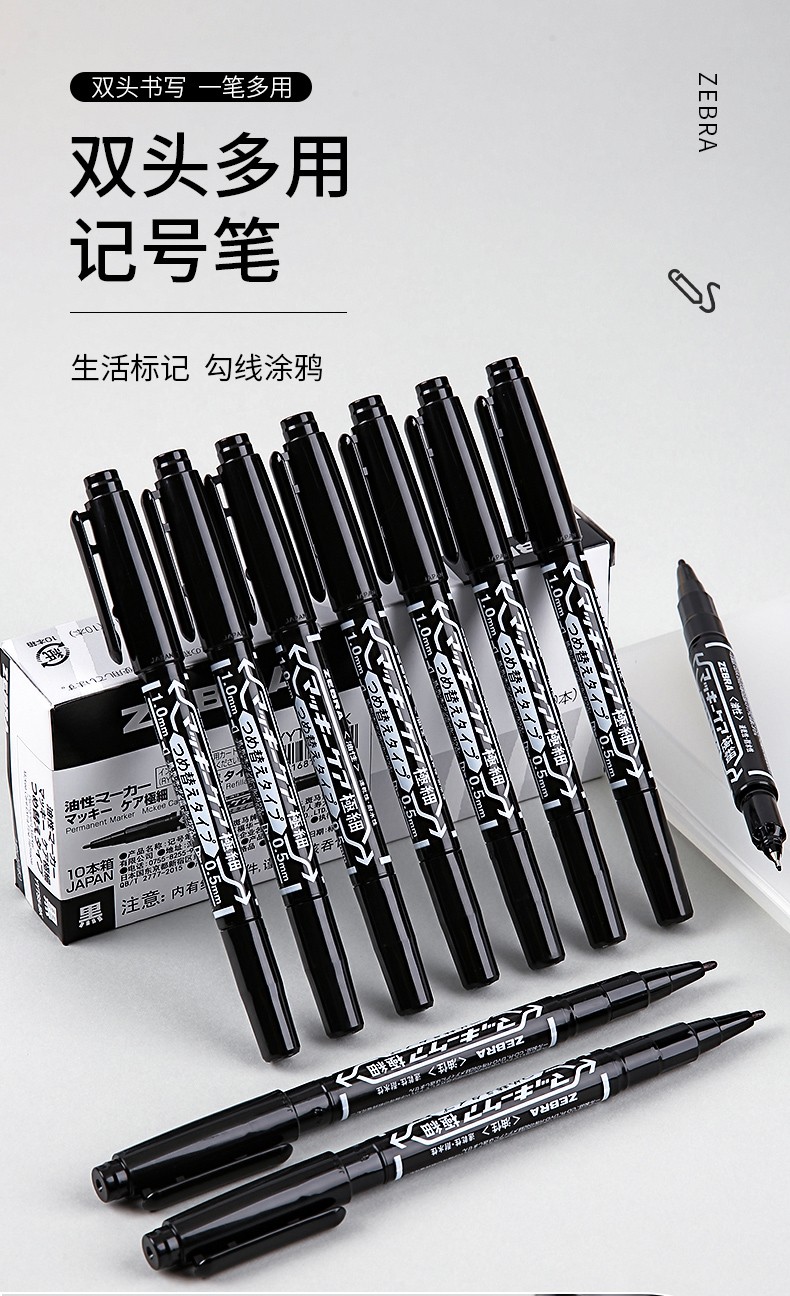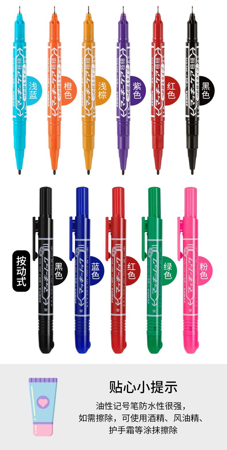 寶克(BAOKE) MP-220 油性小雙頭記號筆 12支/盒 黑色