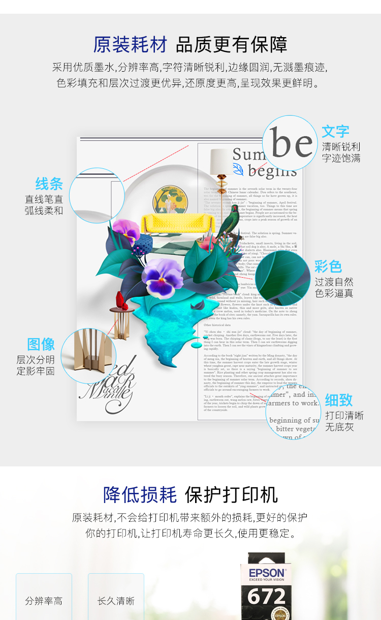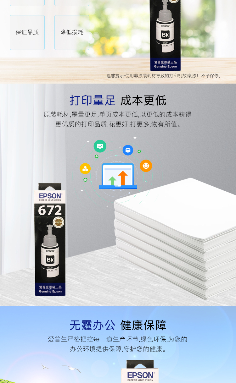 愛普生(EPSON)T6722 墨倉(cāng)打印機(jī)墨水 70ML 青色