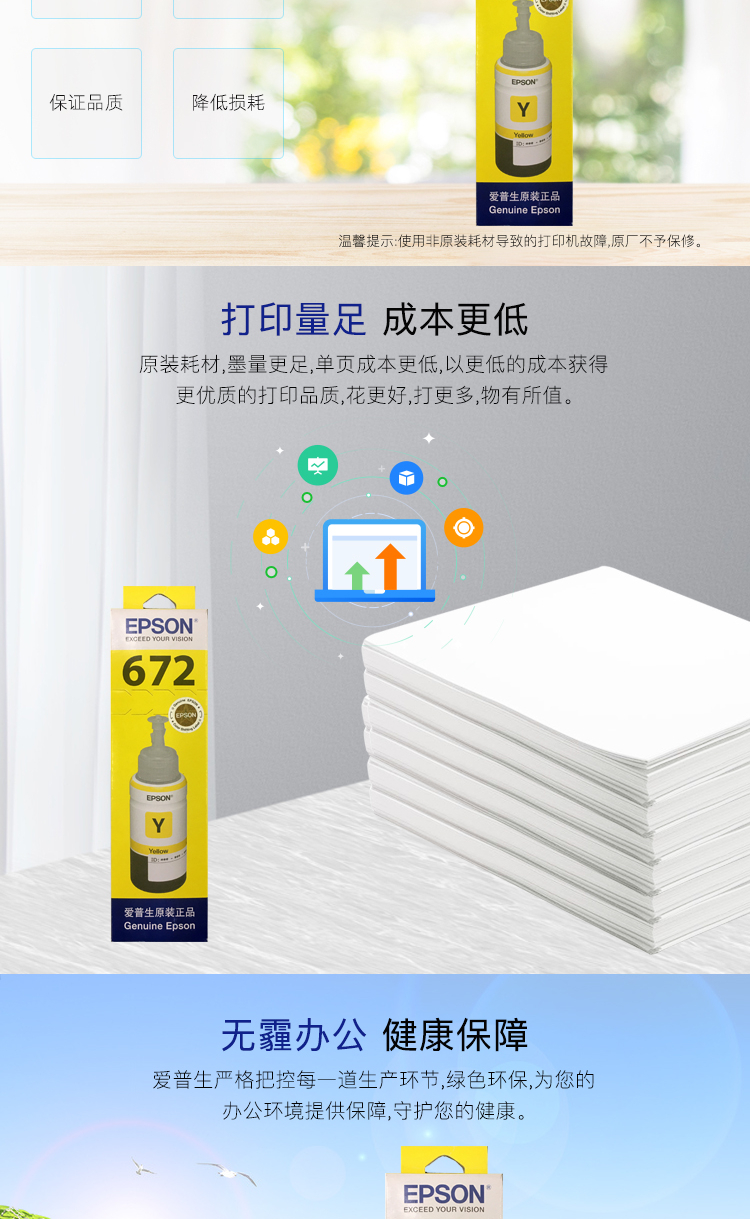 愛普生(EPSON)T6722 墨倉打印機墨水 70ML 青色