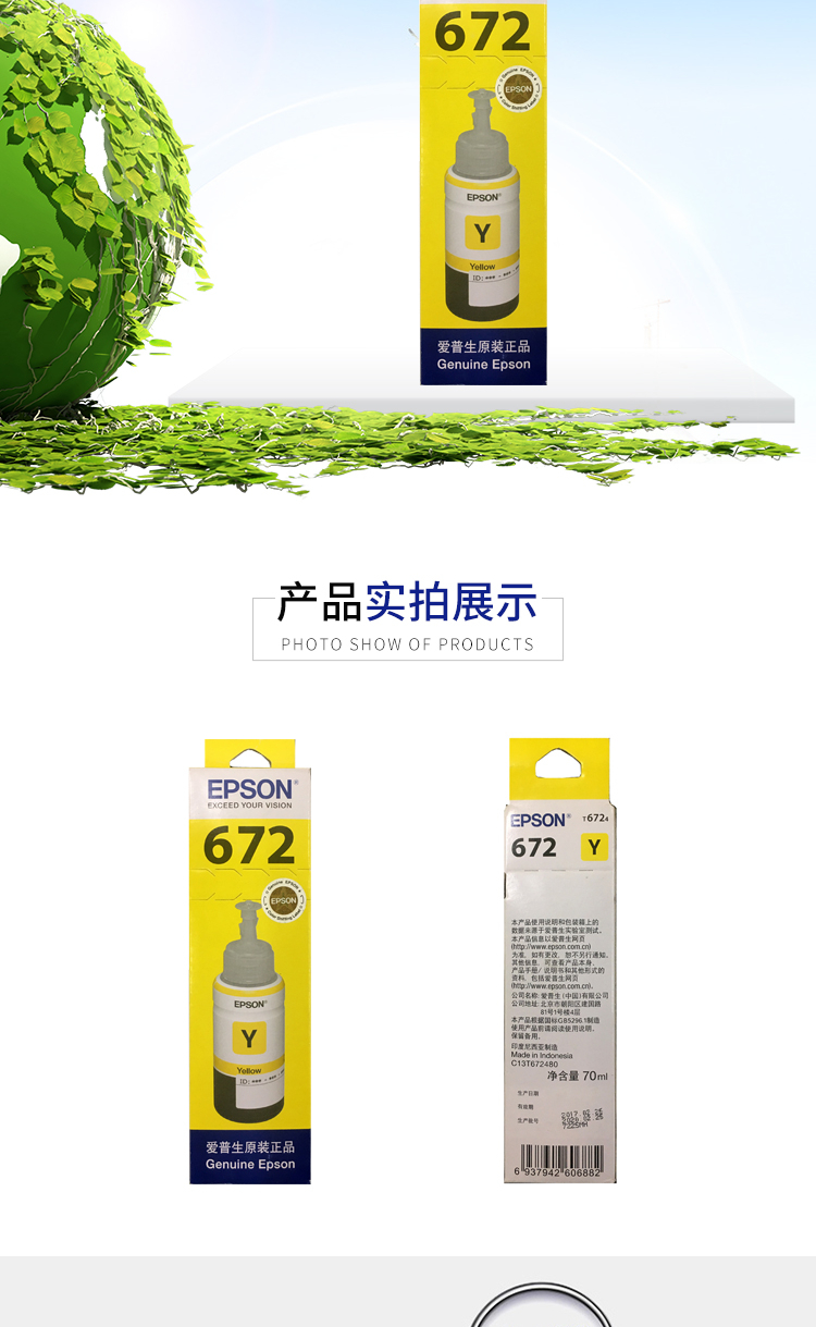愛普生(EPSON)T6721 墨倉打印機墨水 70ML 黑色