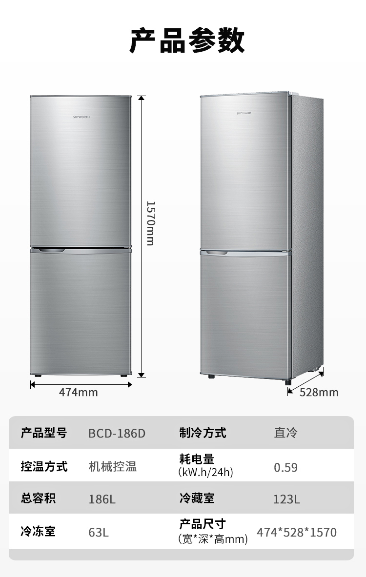 創(chuàng)維(SKYWORTH) 186升家用宿舍租戶電冰箱BCD-186D