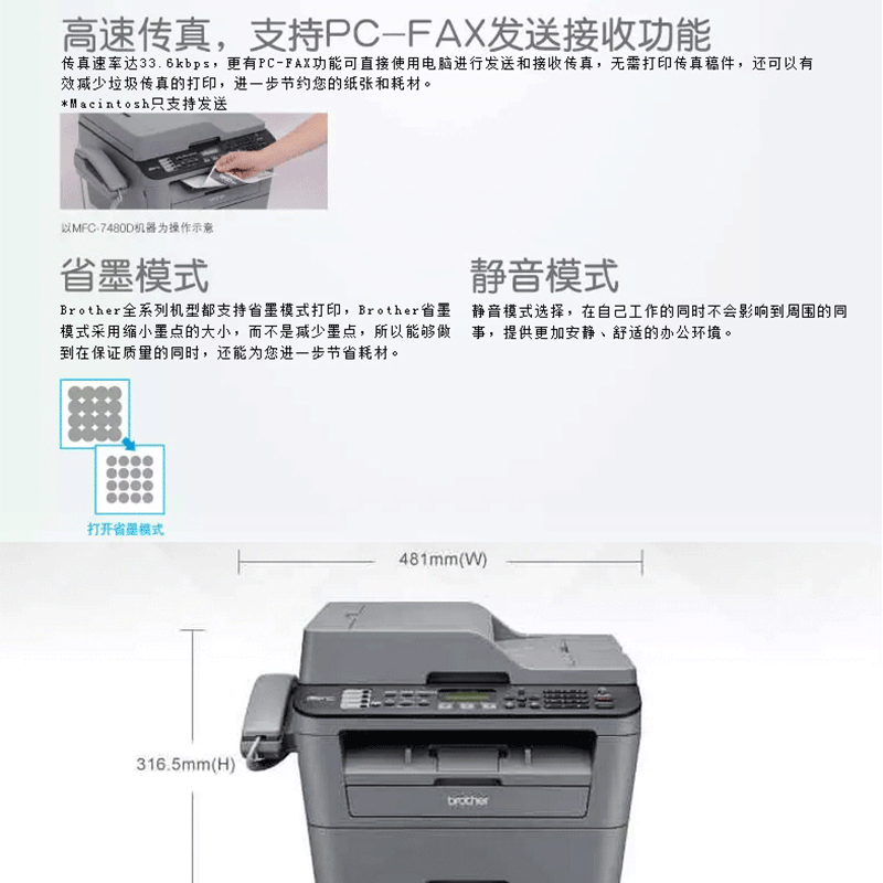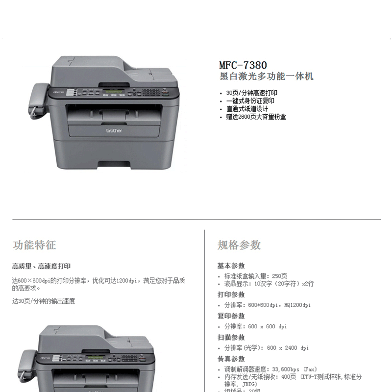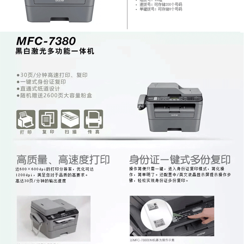 兄弟(brother) MFC-7380 黑白激光多功能一體機(打印、復印、掃描、傳真)
