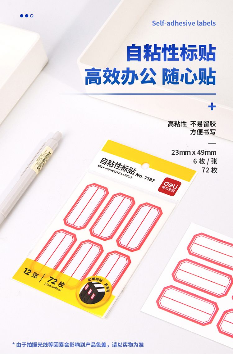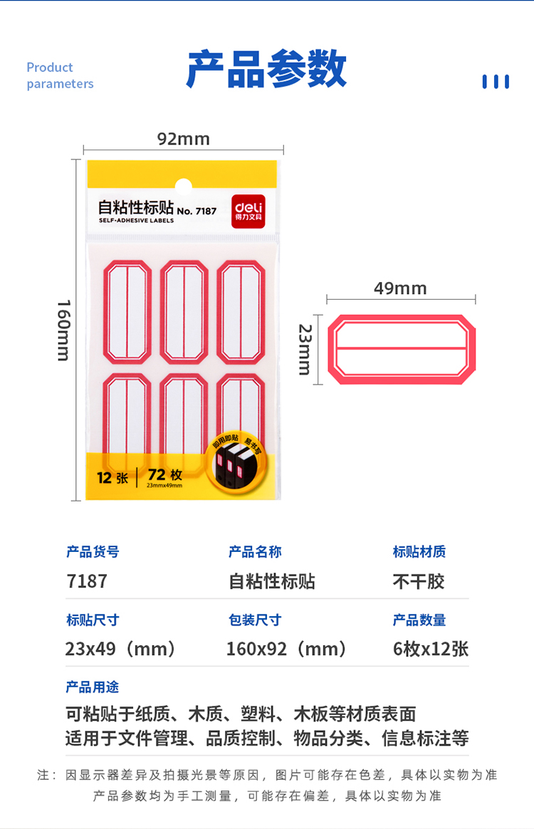 得力(deli) 粘性標簽標貼 7187每張6枚 共12張23*49mm