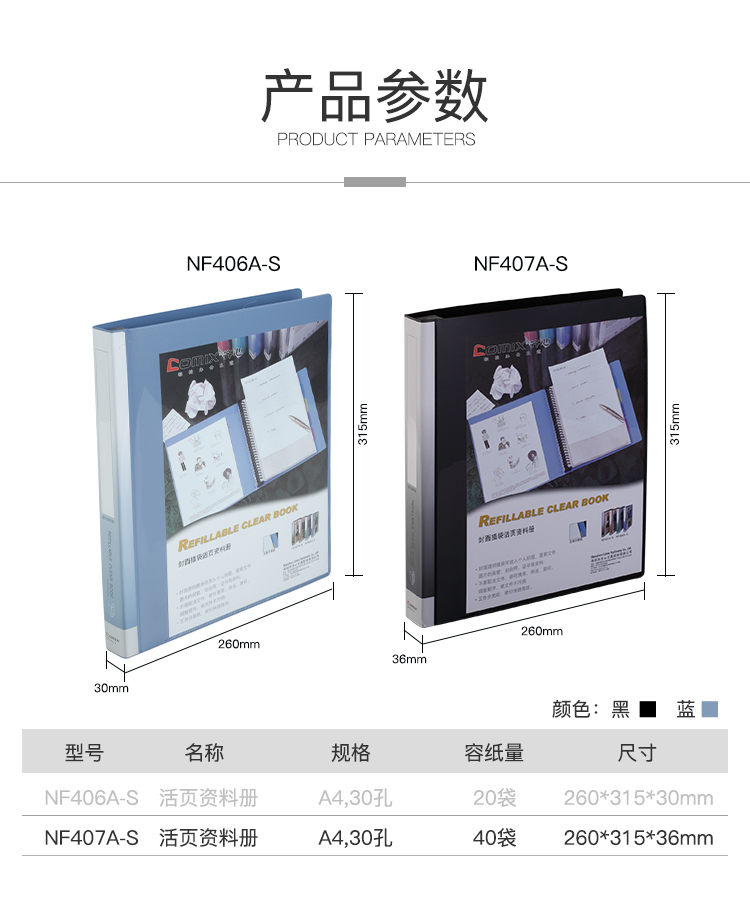 晨光(M&G)ADM95097 插袋檔案塑料文件冊多頁資料冊 40頁 藍色 單個裝