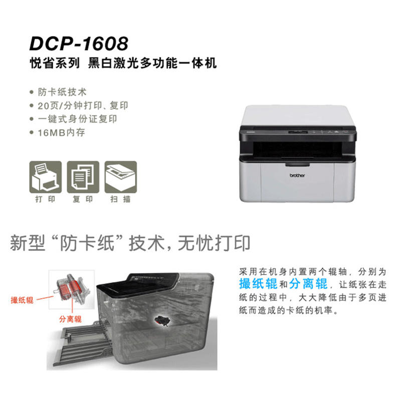 兄弟(brother) DCP-1608 黑白激光多功能一體機(jī)(打印、復(fù)印、掃描)