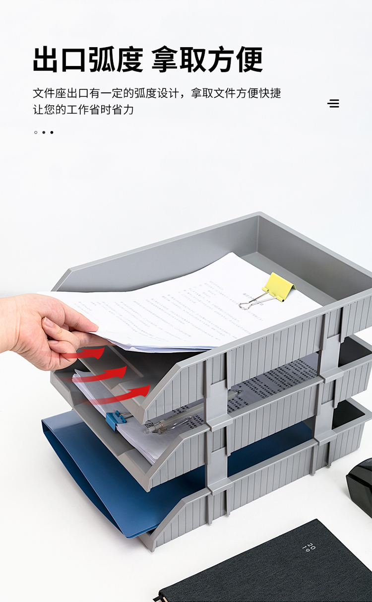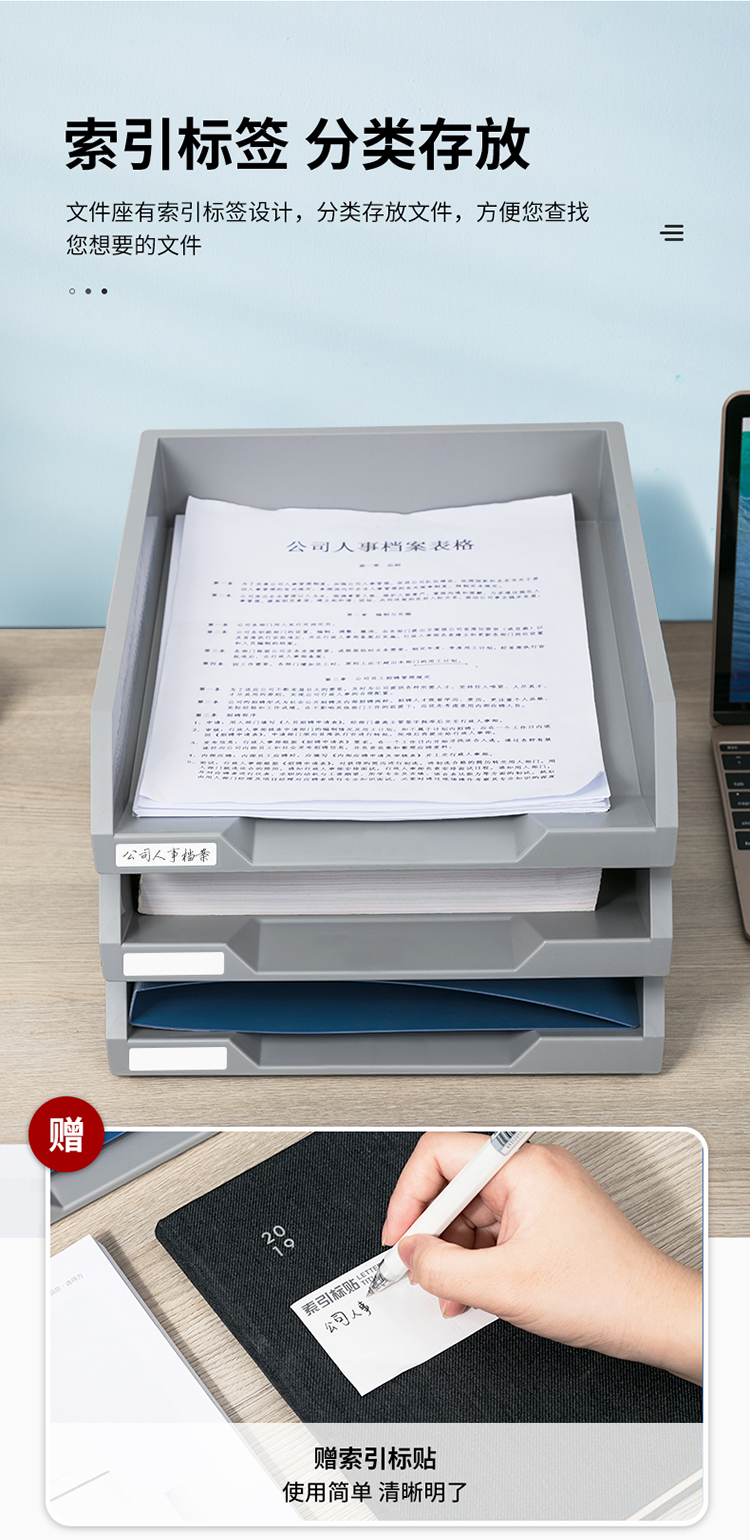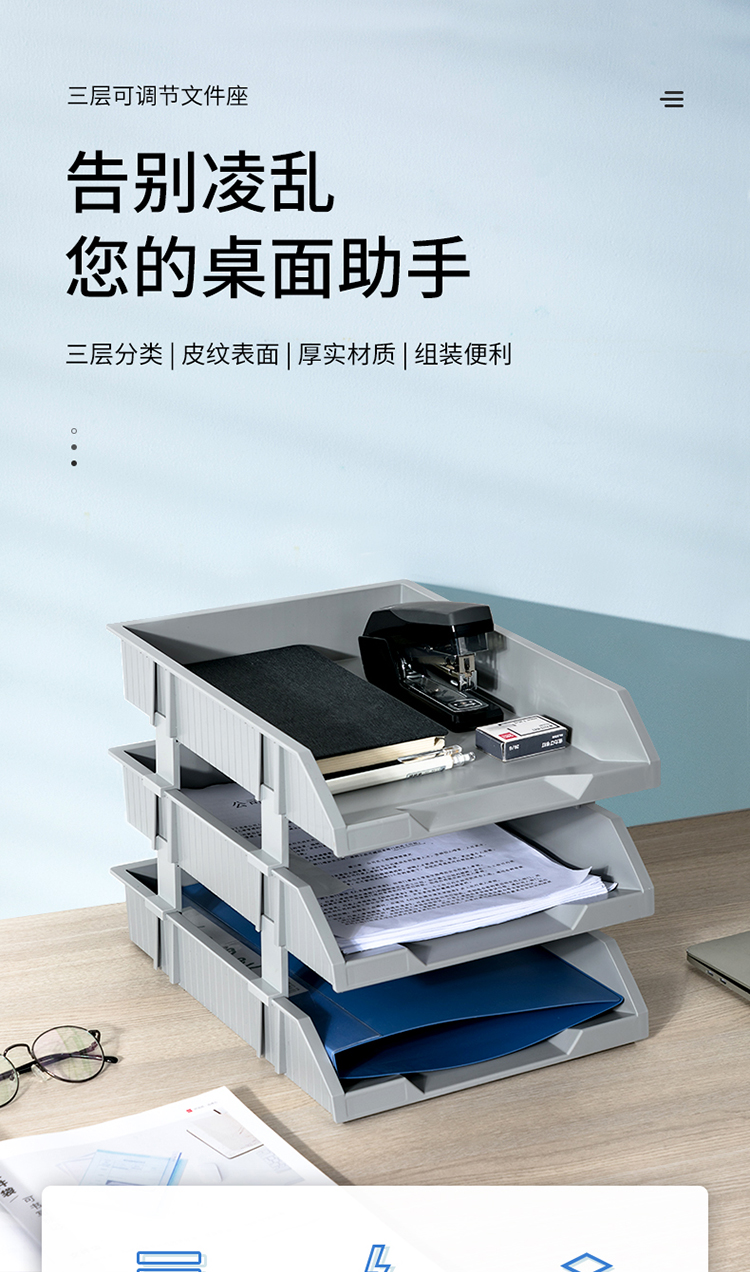 得力(deli)三層可調(diào)節(jié)收納文件夾 淺灰色 9206