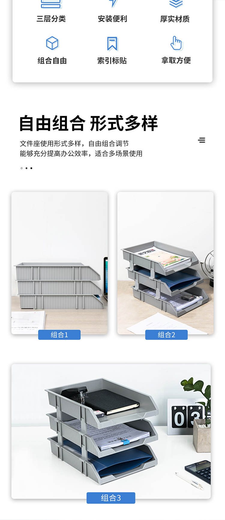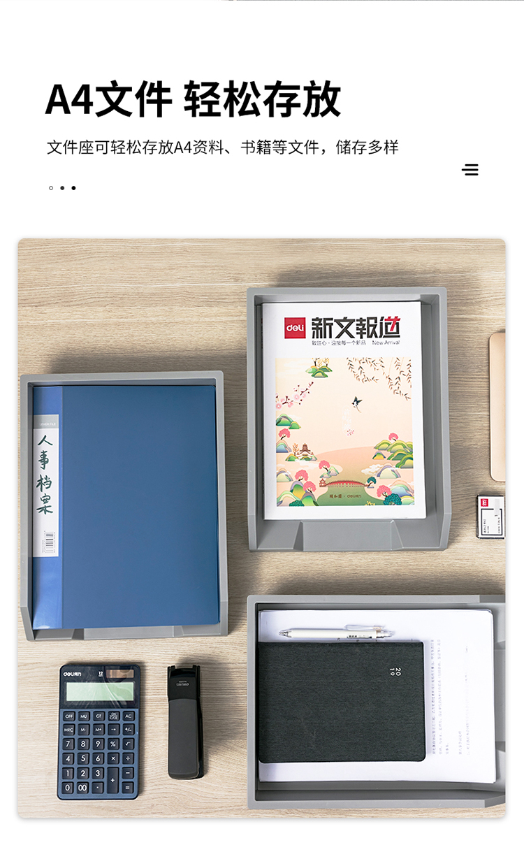 得力(deli)可折疊三聯(lián)文件框 深灰78995
