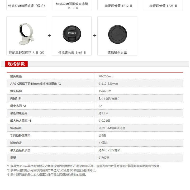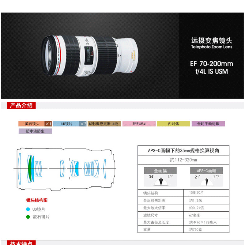 佳能(Canon) EF 70-200mm f/4L USM 遠(yuǎn)攝變焦鏡頭