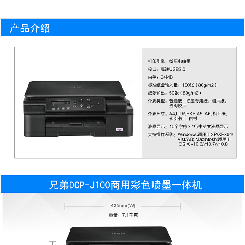兄弟(brother) DCP-J100 商用彩色噴墨多功能一體機(jī)(打印 復(fù)印 掃描)