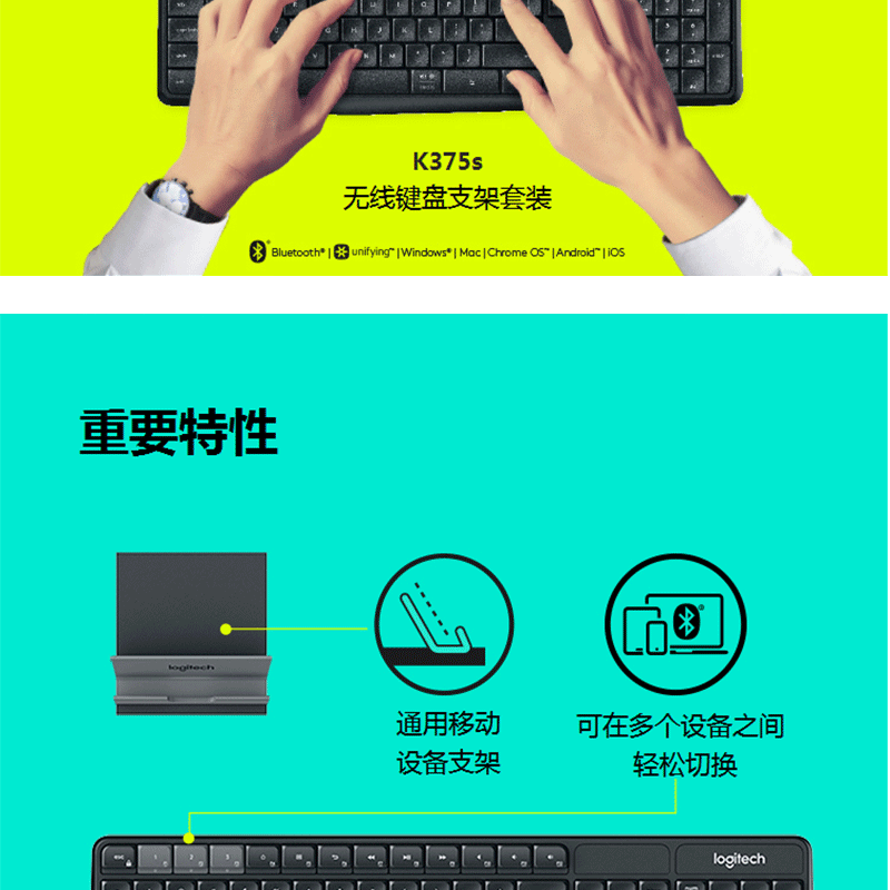 羅技(Logitech) K375s 多設備 無線藍牙鍵盤 (黑色)