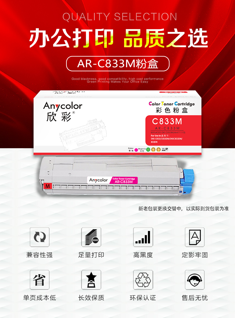 欣彩 OKI C833粉盒 AR-C833M紅色