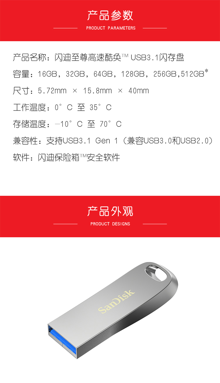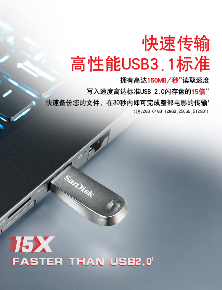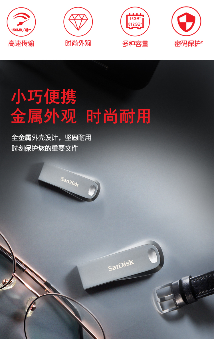 閃迪(SanDisk)512GB USB3.1 U盤 CZ74酷奐 銀色 金屬外殼 內(nèi)含安全加密軟件