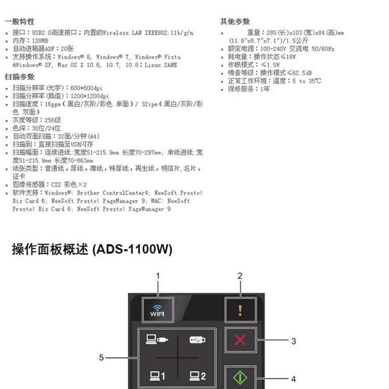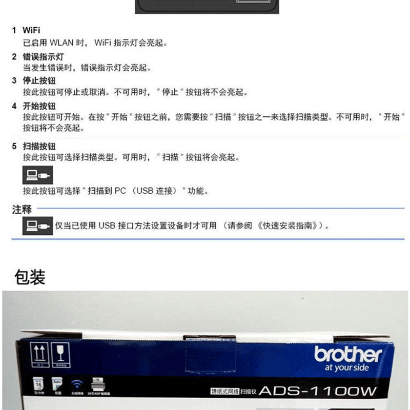 兄弟(brother) ADS-1100W 便攜式饋紙掃描儀