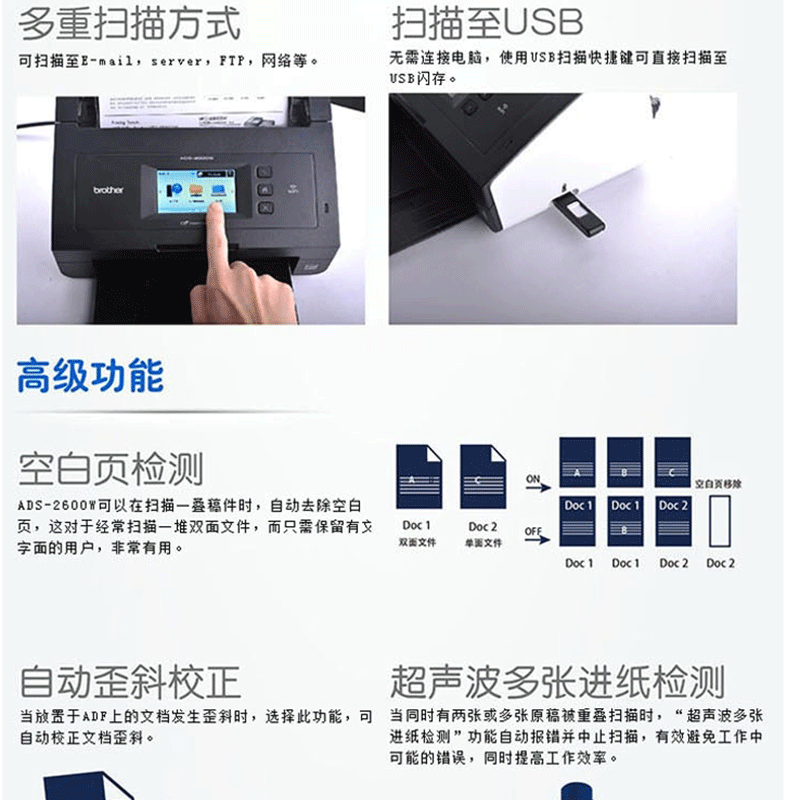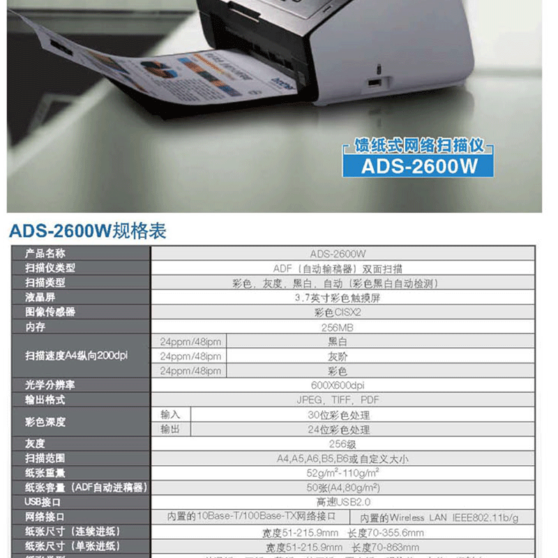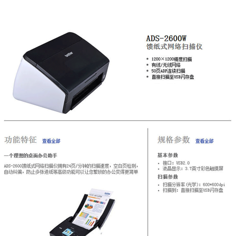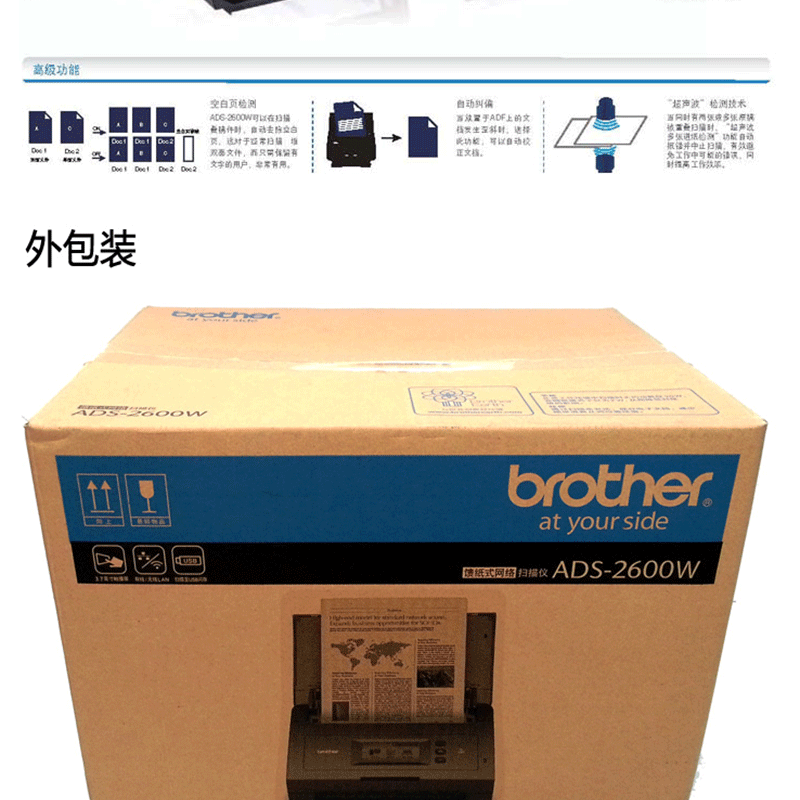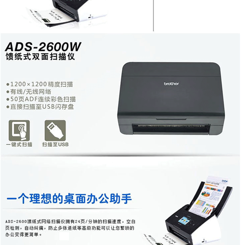 兄弟(brother) ADS-2600W/2600We 饋紙式掃描儀 精度雙面掃描